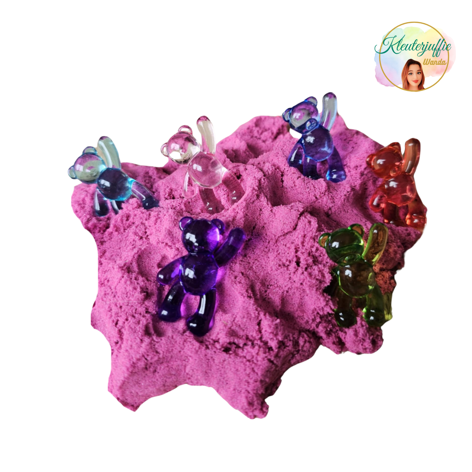 In een setje zitten 3 doorzichtige, gekleurde beren. Elke beer heeft een andere kleur.