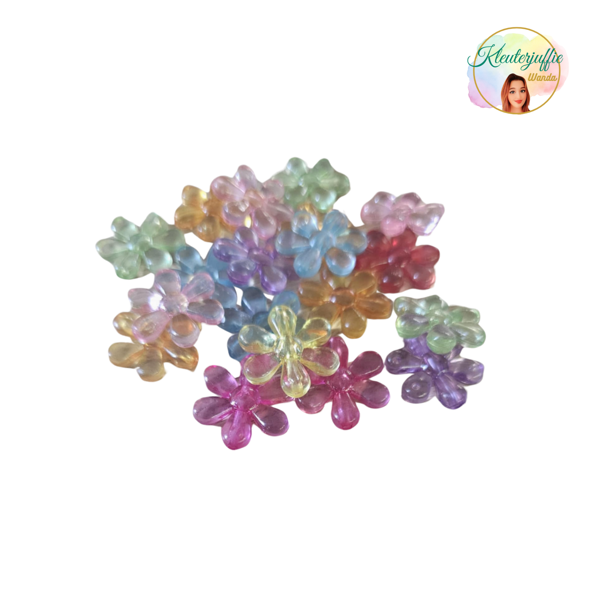 Loose parts zijn een fantastische aanvulling voor een speelwerkplek. Kinderen kunnen bij loose parts hun fantasie gebruiken en het materiaal kan van alles voorstellen. Deze bloemen zijn ook een fantastische toevoeging. De bloemen zijn doorzichtig en kunnen daardoor super leuk op een lichttablet, op een bordspel en- of in water gebruikt worden.