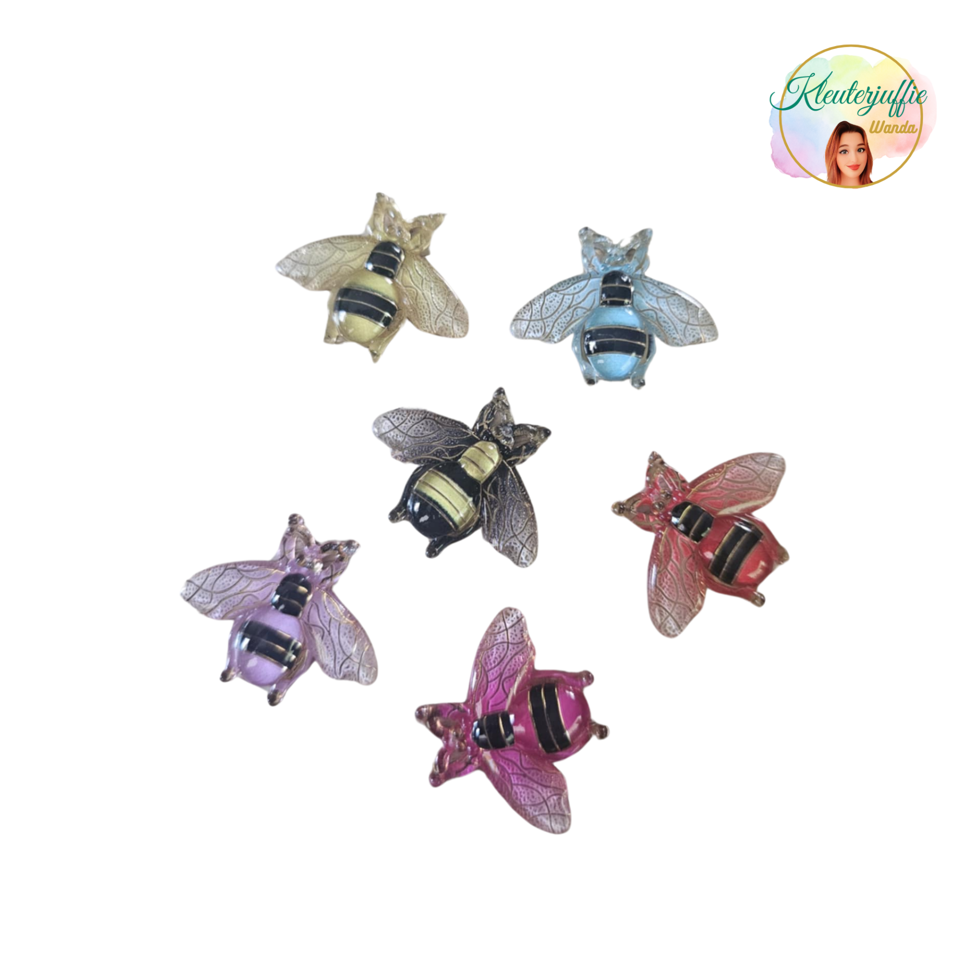 In een setje zitten 6 bijtjes in verschillende kleuren.