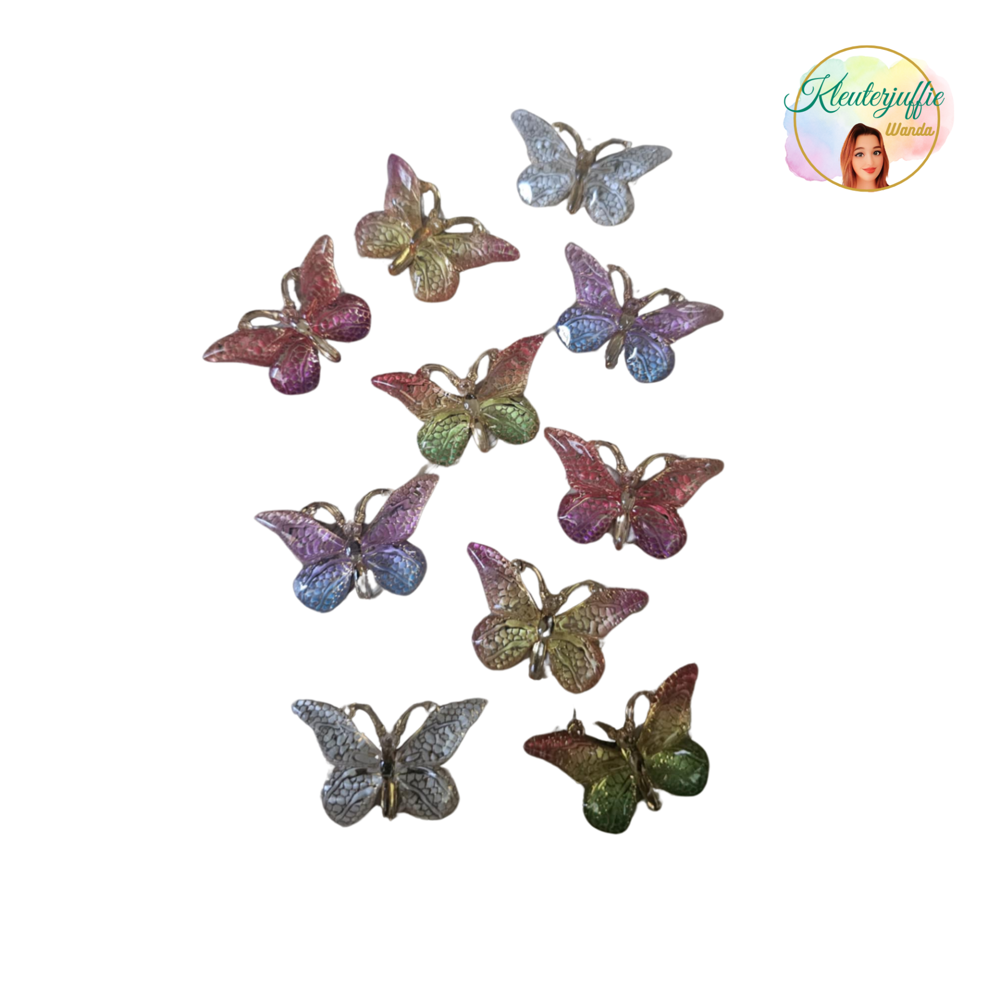 In een setje zitten 5 vlinders in verschillende kleuren.