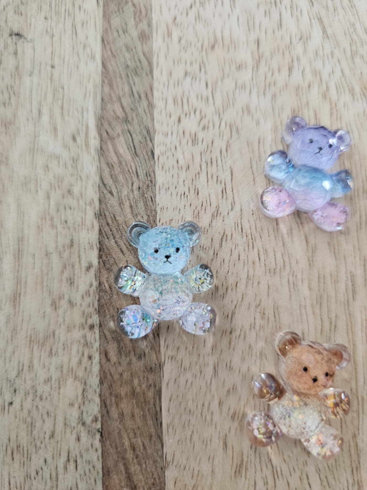 Loose parts zijn een fantastische toevoeging aan een speel/ werkplek. Deze beertjes zijn gemaakt van hars en in de hars zijn glitters verwerkt.