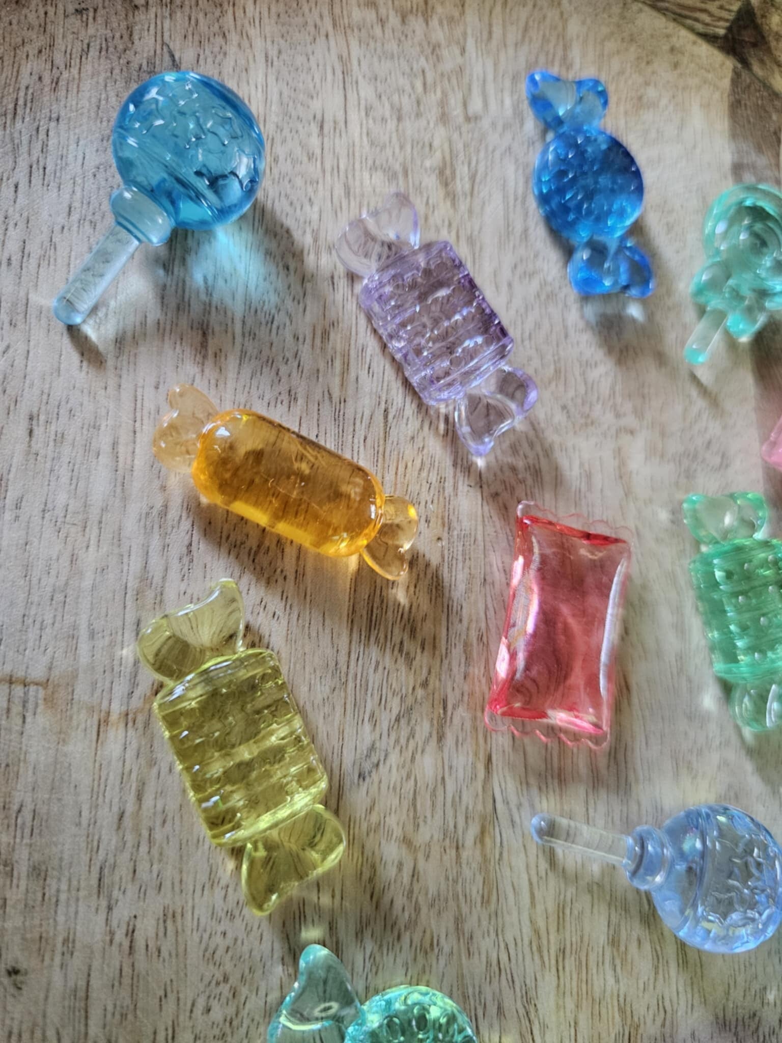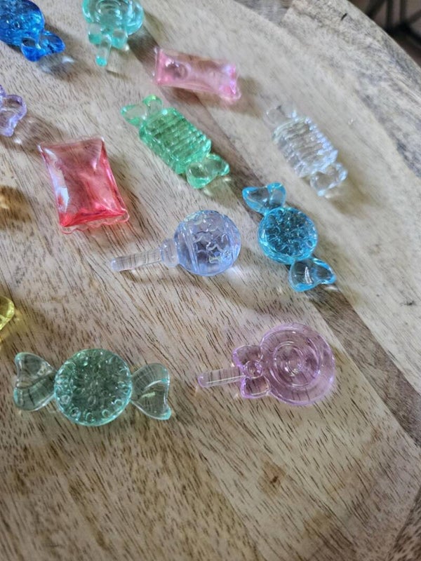 Loose parts zijn een fantastische toevoeging aan een speel/ werkplek. Deze snoepjes zijn gemaakt van acryl.