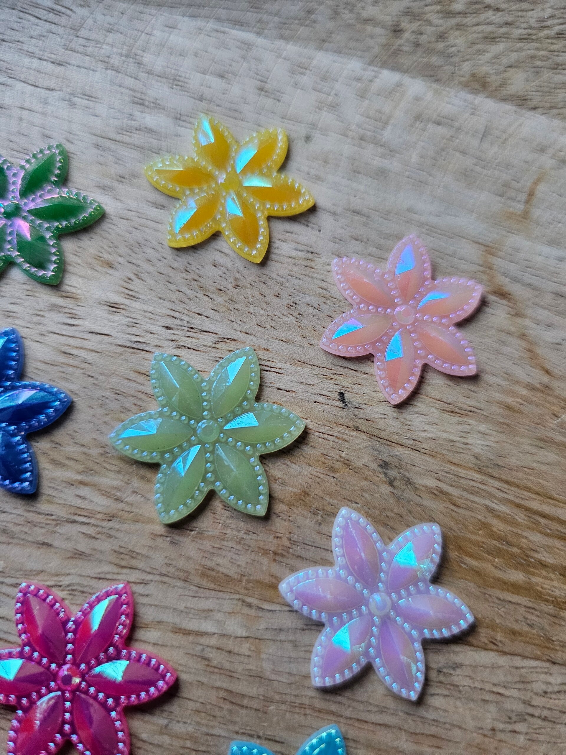 Loose parts zijn een fantastische toevoeging aan een speel/ werkplek. Deze glans bloemen zijn gemaakt van acryl.