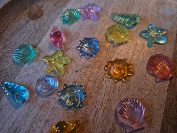 Loose parts zijn een fantastische toevoeging aan een speel/ werkplek. Deze zeefiguren zijn gemaakt van acryl en ze zijn allemaal doorzichtig.