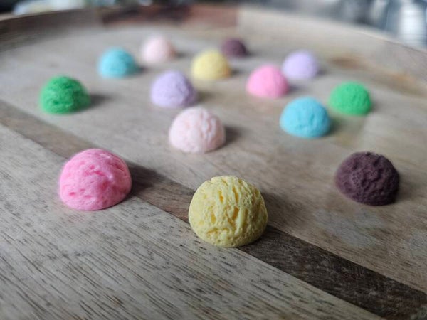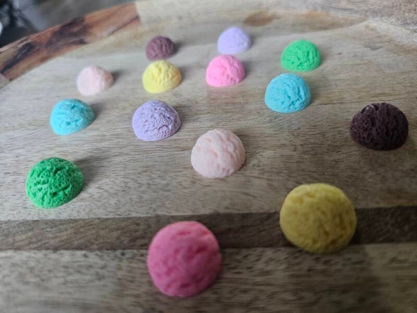 Loose parts zijn een fantastische toevoeging aan een speel/ werkplek. Deze ijsbolletjes zijn gemaakt van acryl en ze zijn lijken net echt.