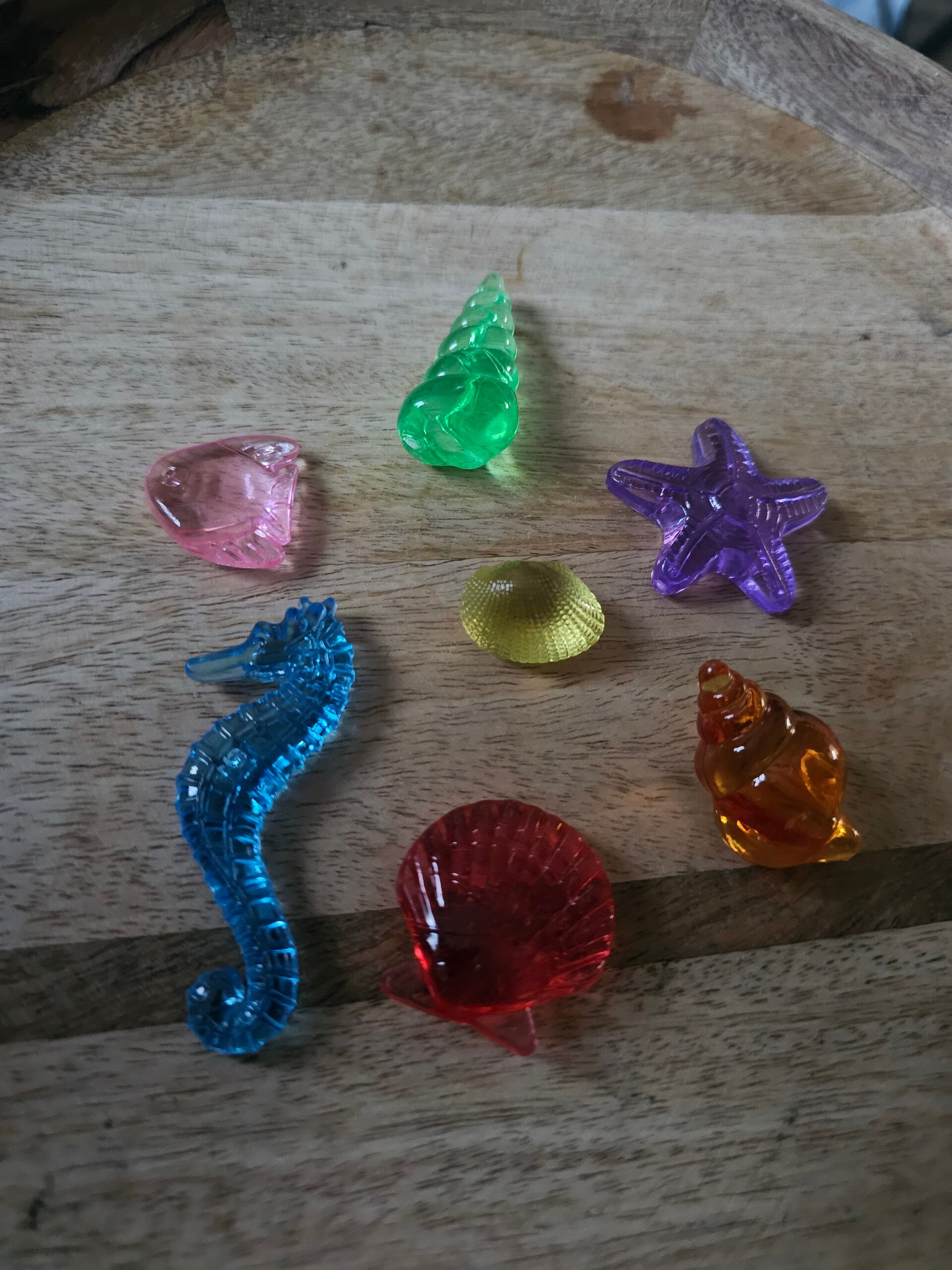Loose parts zijn een fantastische toevoeging aan een speel/ werkplek. Deze set grote zeefiguren zijn echt fantastisch. Ze zijn gemaakt van acryl