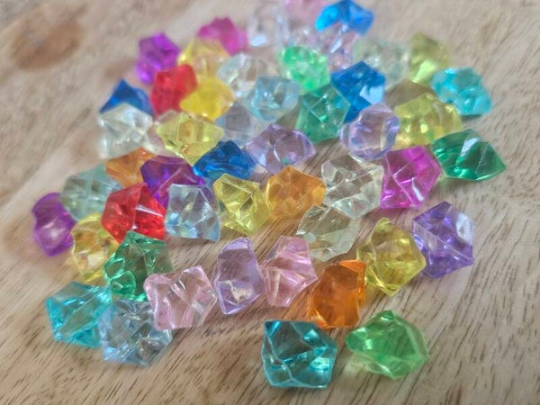 Loose parts zijn een fantastische toevoeging aan een speel/ werkplek. Deze diamanten zijn gemaakt van acryl.