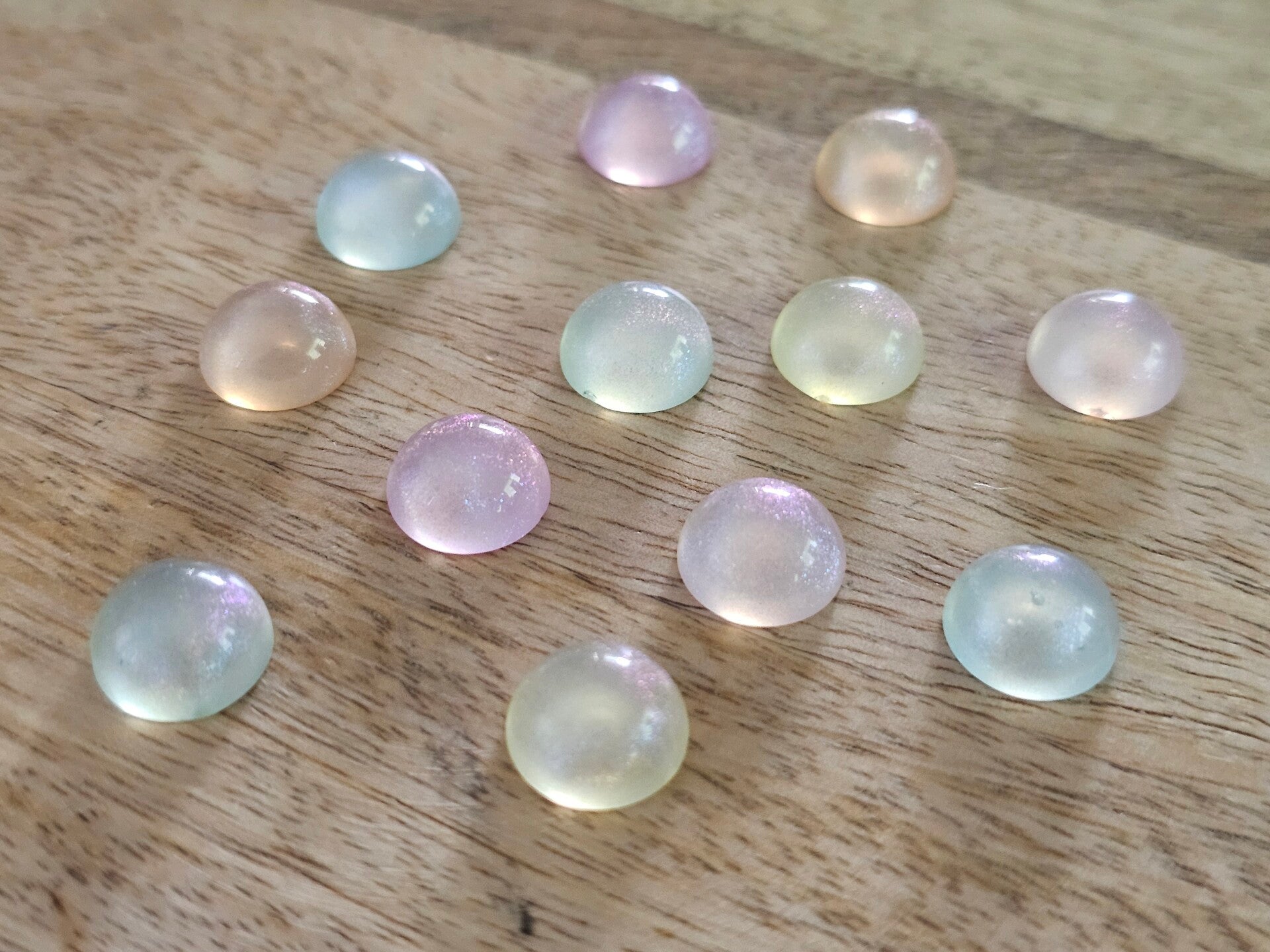 Loose parts zijn een fantastische toevoeging aan een speel/ werkplek. Deze halve cirkels zijn gemaakt van epoxy hars en hierin zijn mini glitters verwerkt.