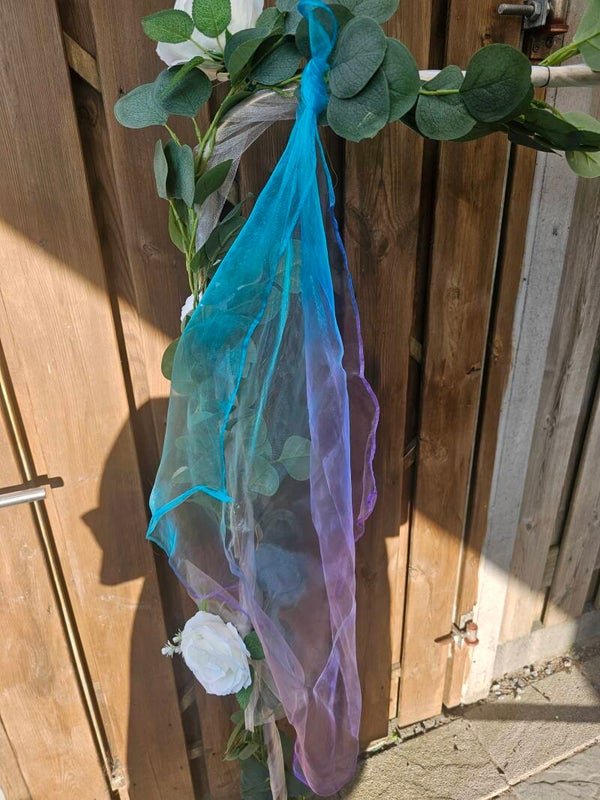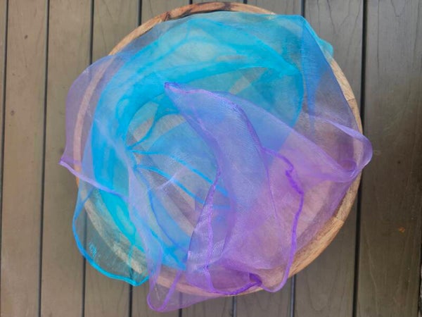 Dit danssjaaltje heeft 2 kleuren lichtblauw en paars. De kleuren lopen in elkaar over. Dit geeft echt een prachtig effect.
