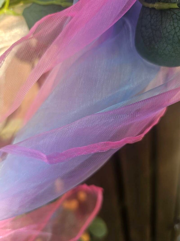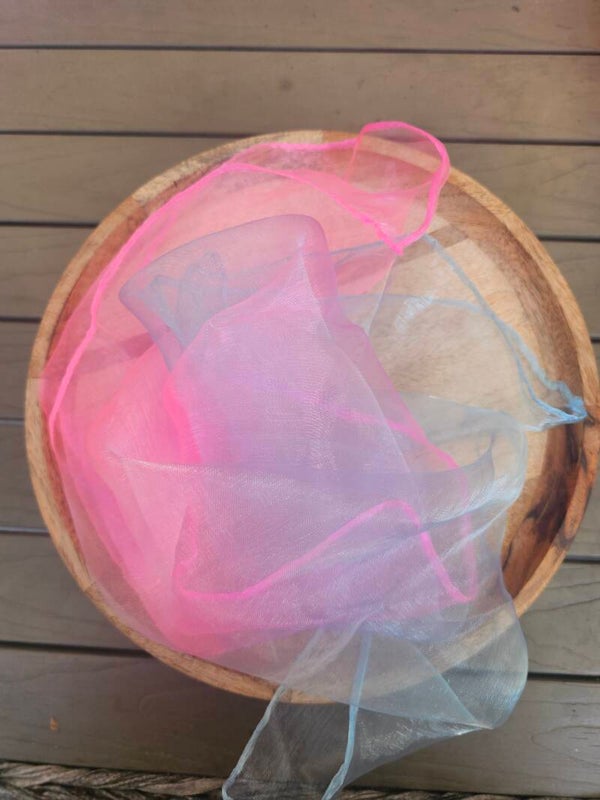 Dit danssjaaltje heeft 2 kleuren lichtblauw en roze. De kleuren lopen in elkaar over. Dit geeft echt een prachtig effect.