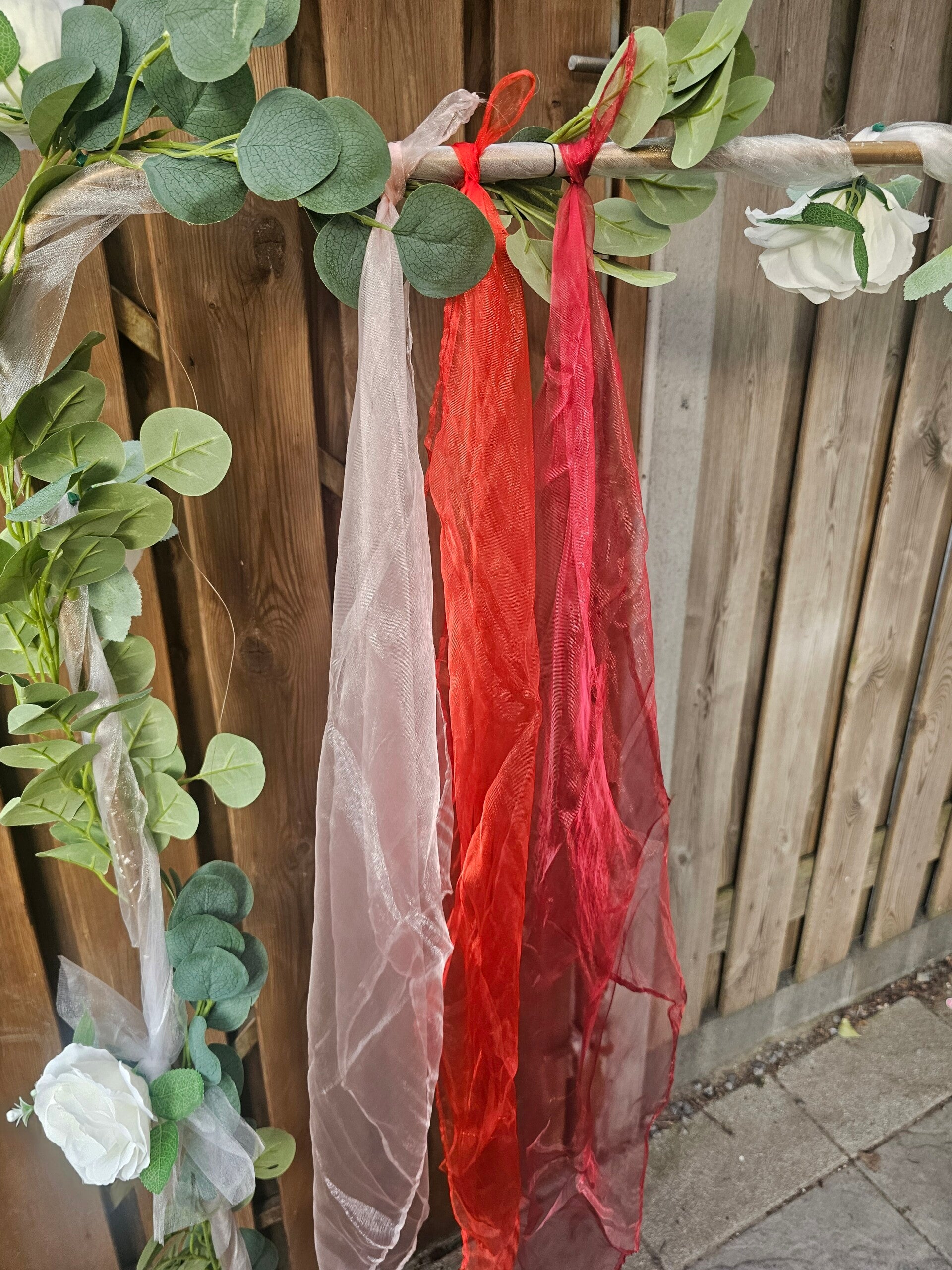 Dit setje dans sjaals heeft 3 kleuren zalmkleur, rood en donkerrood. Het zijn zachte, gladde sjaals en fijn in gebruik.