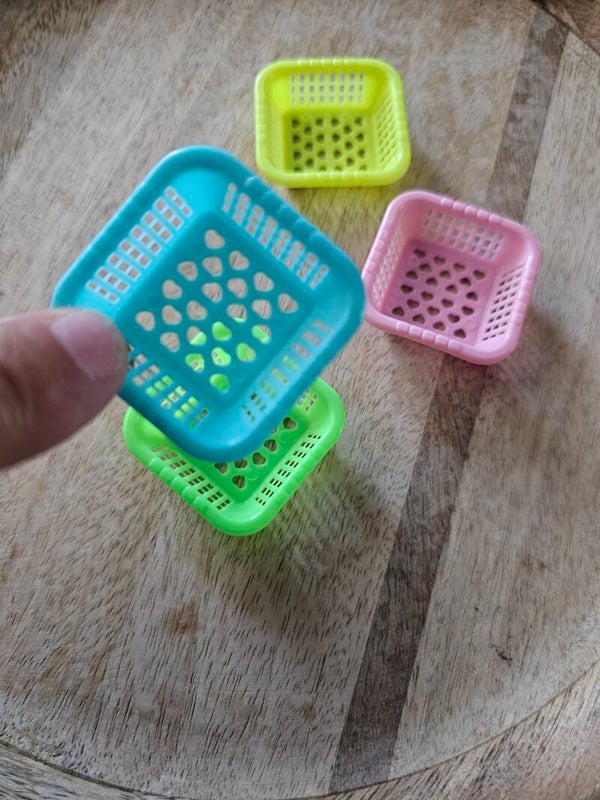 Het bakje is een mooie toevoeging aan de speelbak. Met de bakjes kunnen de kinderen kleine materialen sorteren of ze kunnen materialen zeven. De bakjes zijn zo ontworpen dat ze gebruikt kunnen worden in de zandtafel, watertafel, rijsttafel en dergelijke speeltafels. De bakjes wegen heel licht en daardoor kunnen jonge kinderen er makkelijk mee spelen.