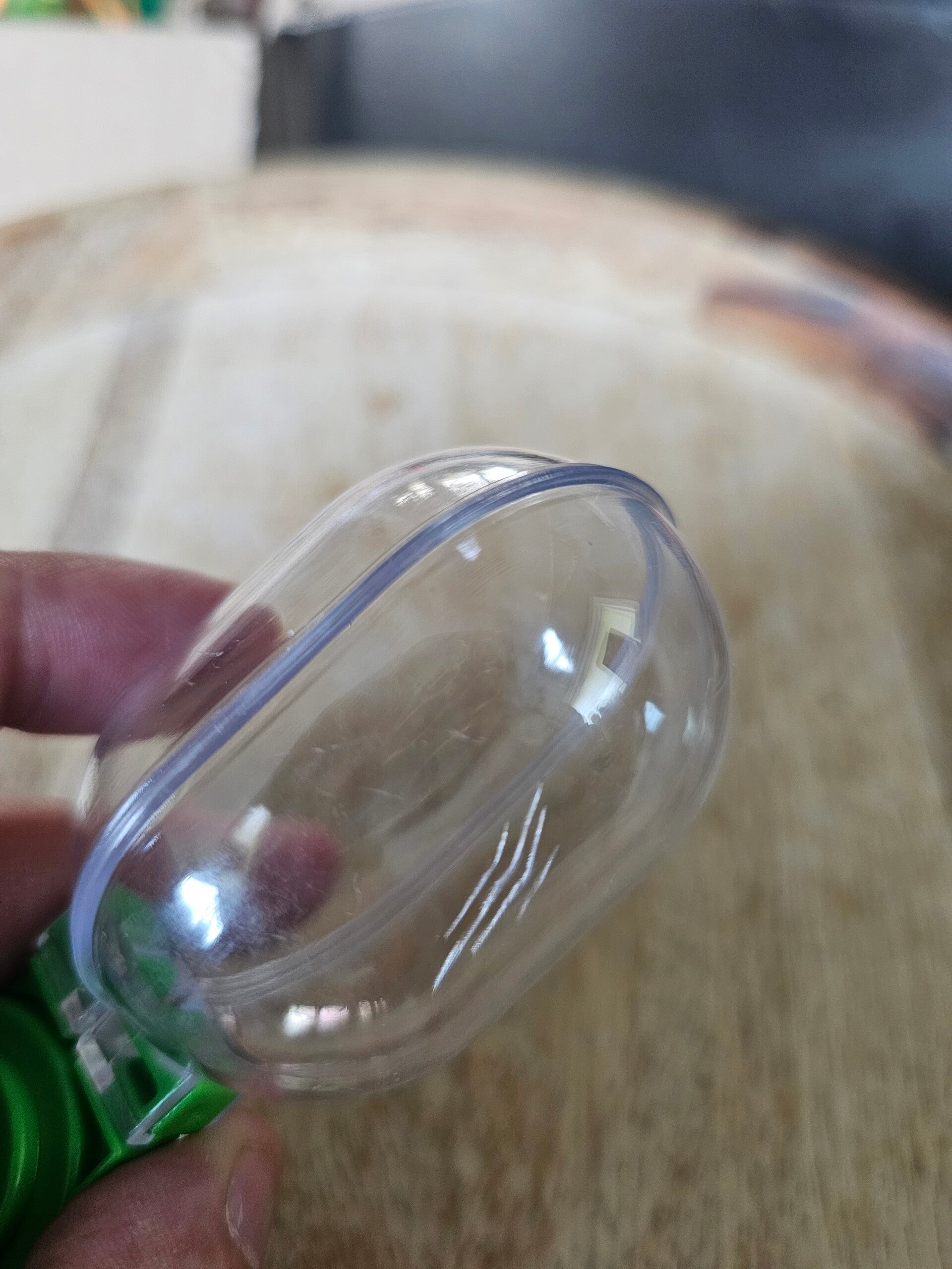 Er zitten kleine barst streepjes op de ovale schepvorm. Ze zijn gelukkig niet door maar je ziet de streepjes wel.