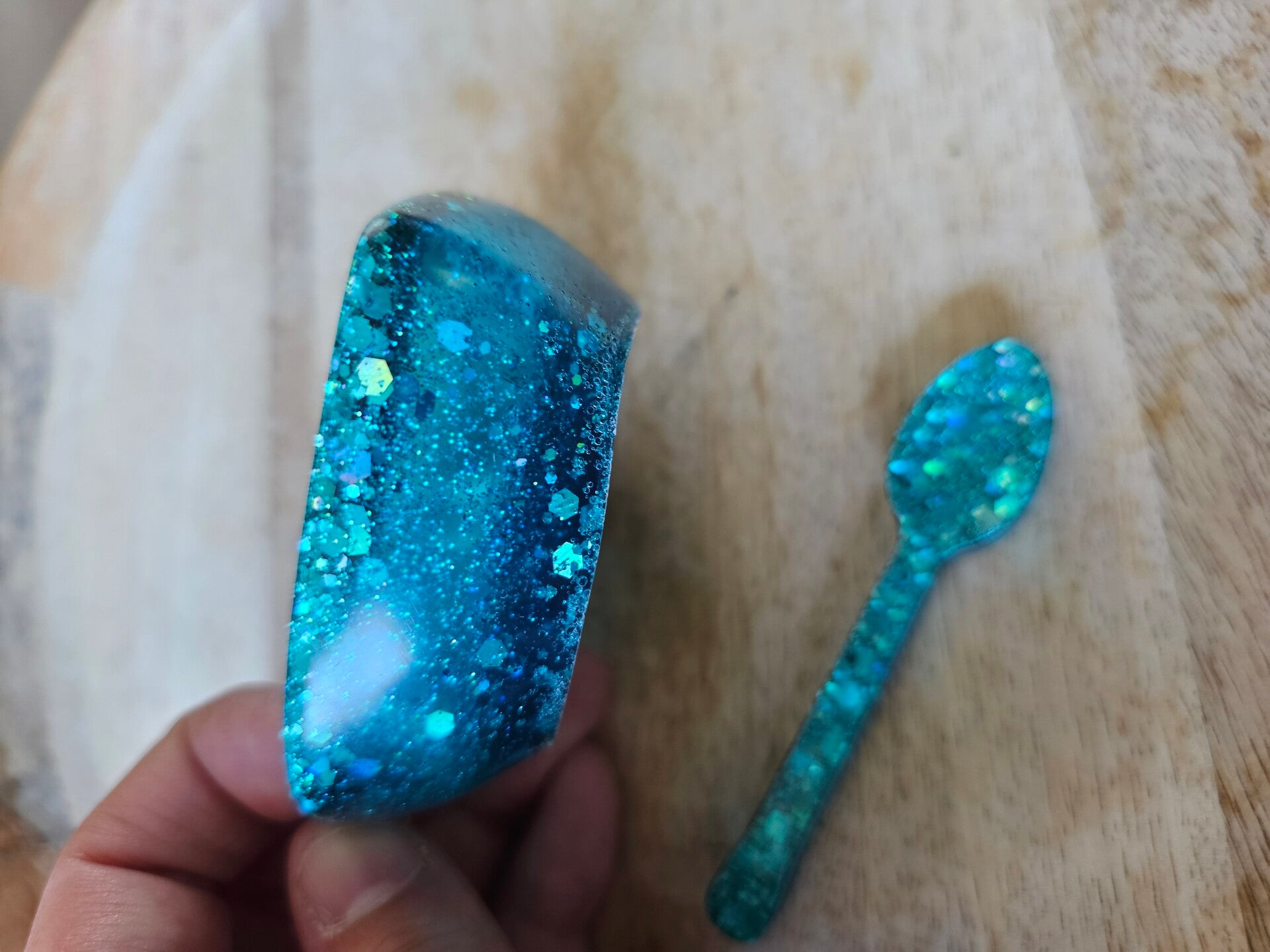 Loose parts zijn een fantastische toevoeging aan een speel/ werkplek. Dit prachtige bakje is gemaakt van epoxy. De bakjes zijn doorzichtig met super veel glitters wat bijvoorbeeld een fantastisch effect geeft op een lichttafel of in een watertafel.