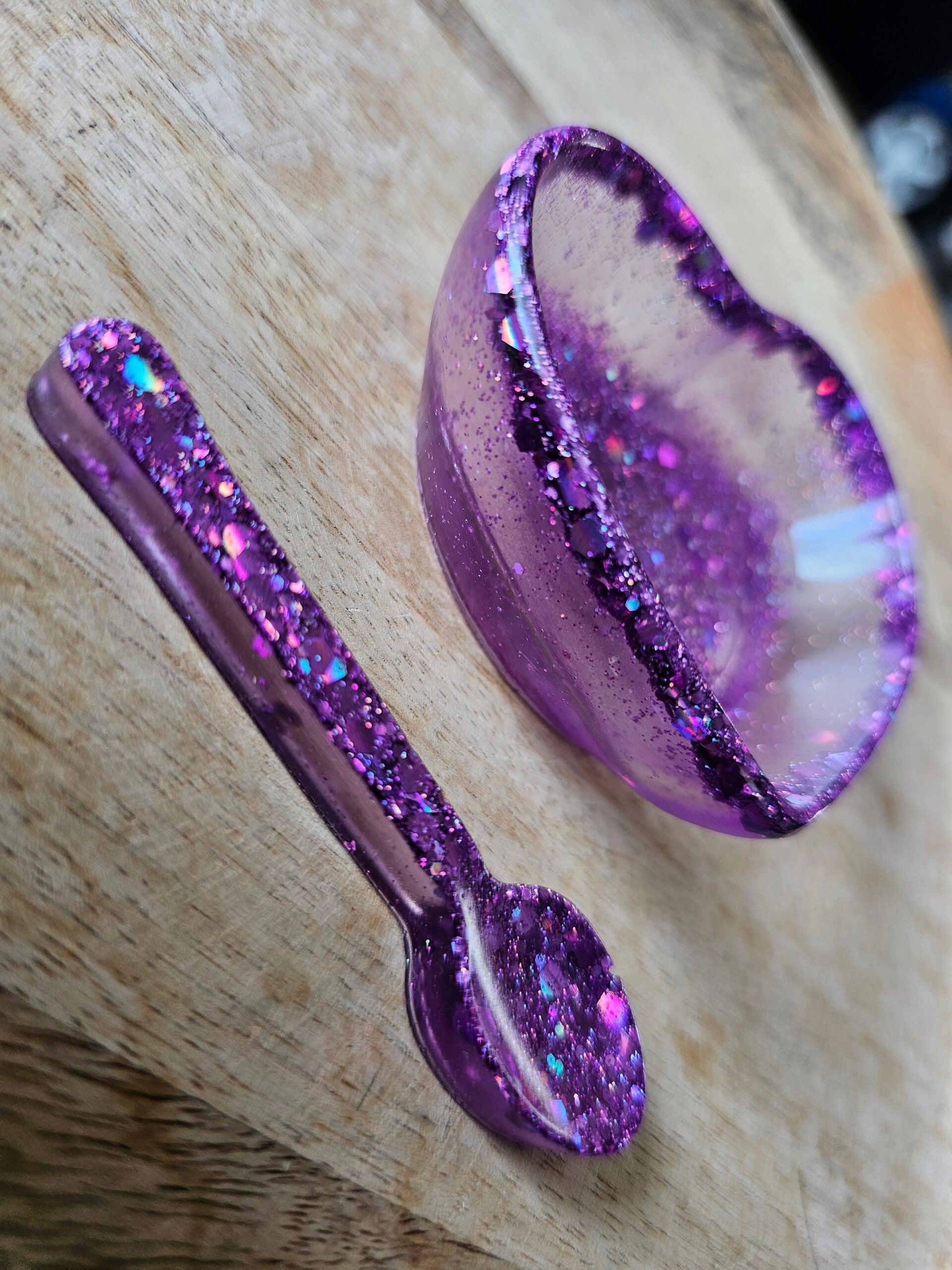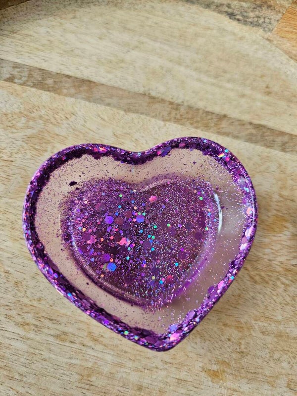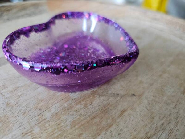 Loose parts zijn een fantastische toevoeging aan een speel/ werkplek. Dit prachtige bakje is gemaakt van epoxy. De bakjes zijn doorzichtig met super veel glitters wat bijvoorbeeld een fantastisch effect geeft op een lichttafel of in een watertafel.