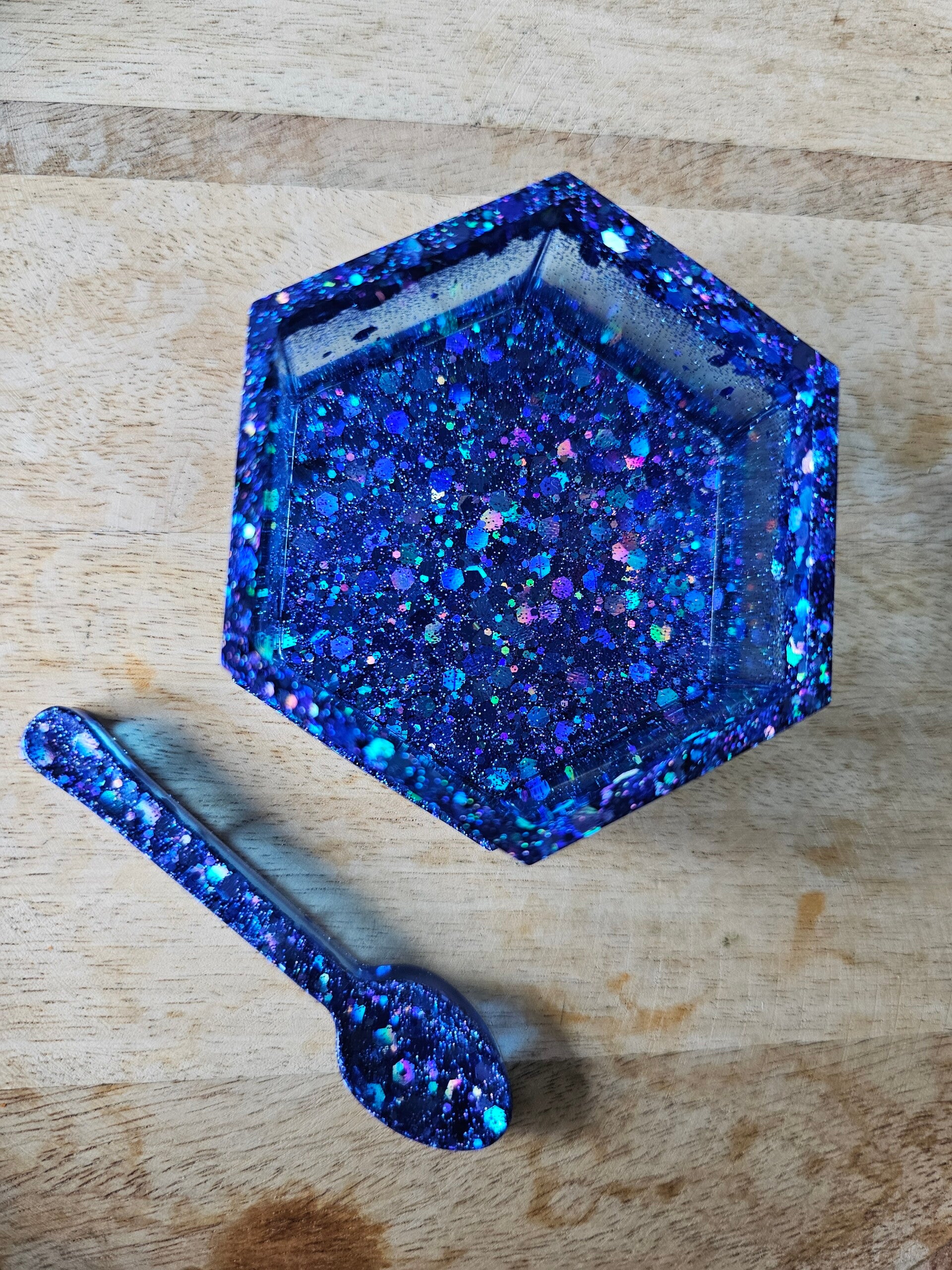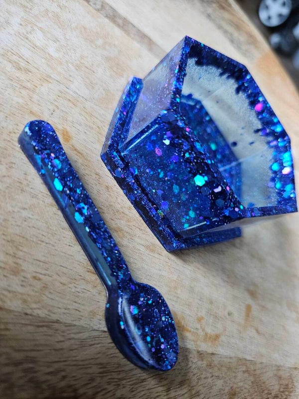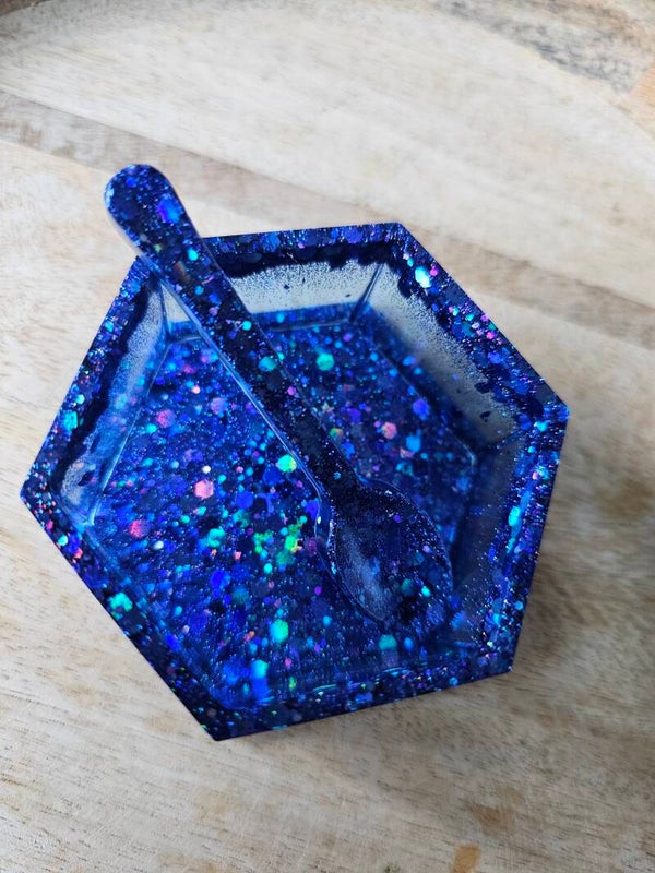 Loose parts zijn een fantastische toevoeging aan een speel/ werkplek. Dit prachtige bakje is gemaakt van epoxy. De bakjes zijn doorzichtig met super veel glitters wat bijvoorbeeld een fantastisch effect geeft op een lichttafel of in een watertafel.