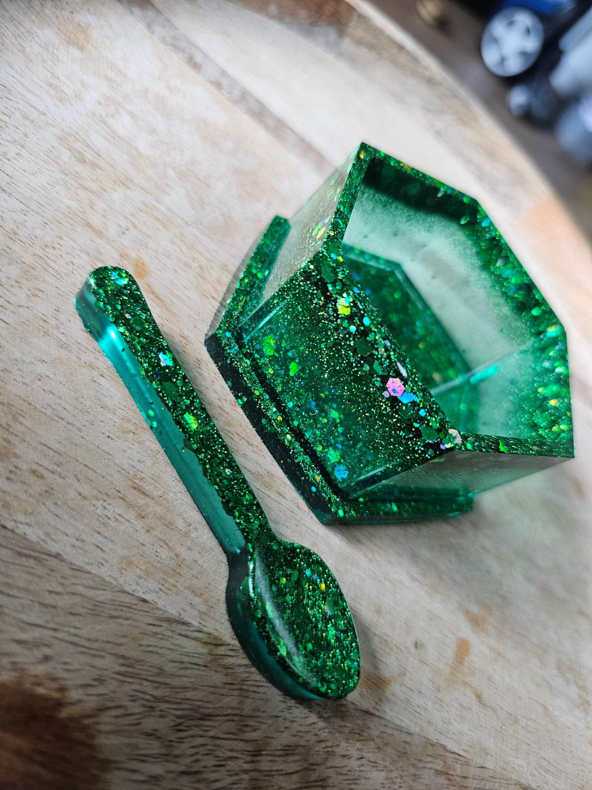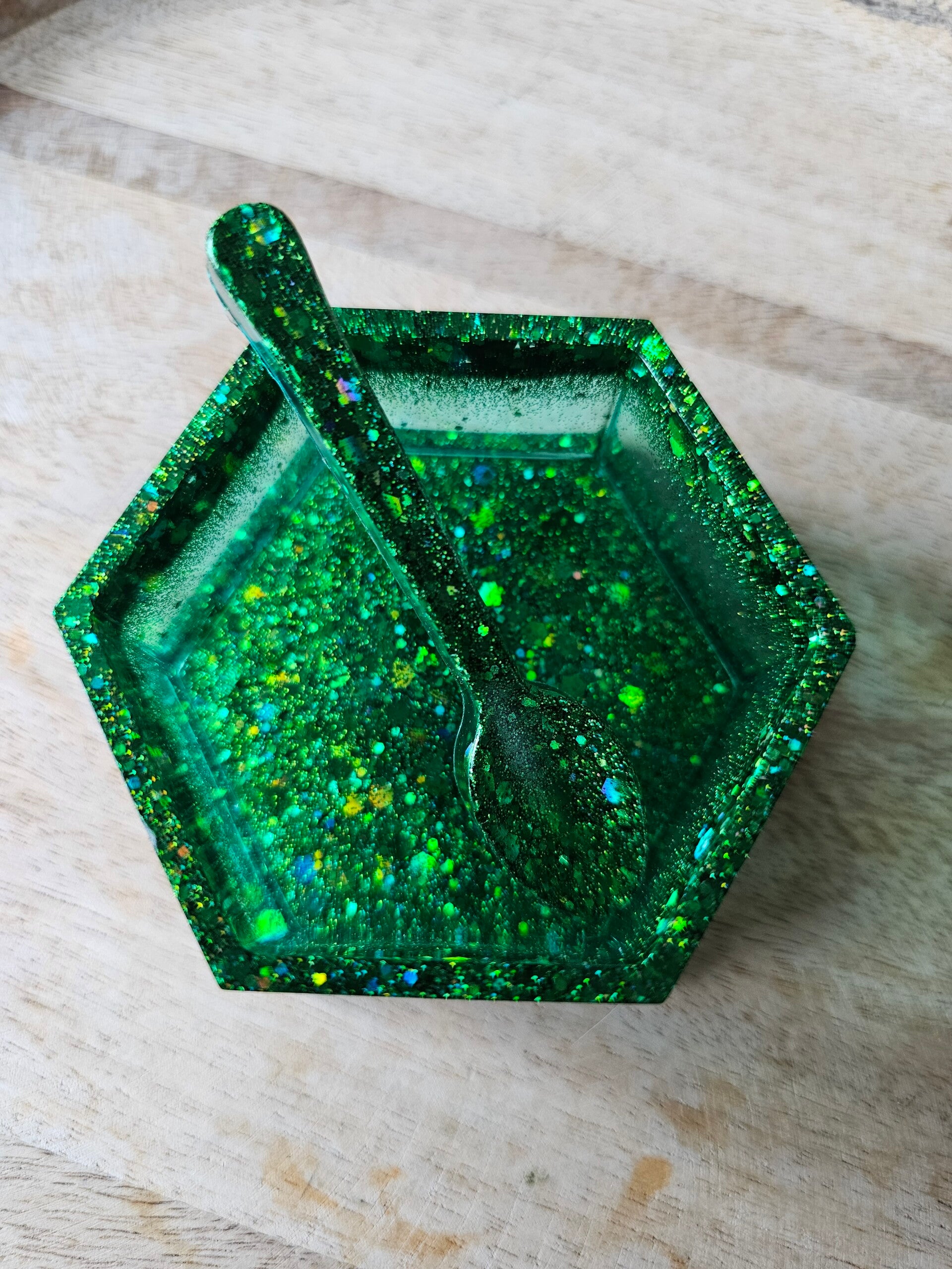 Loose parts zijn een fantastische toevoeging aan een speel/ werkplek. Dit prachtige bakje is gemaakt van epoxy. De bakjes zijn doorzichtig met super veel glitters wat bijvoorbeeld een fantastisch effect geeft op een lichttafel of in een watertafel.