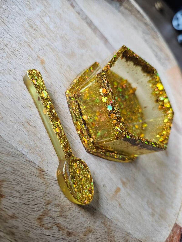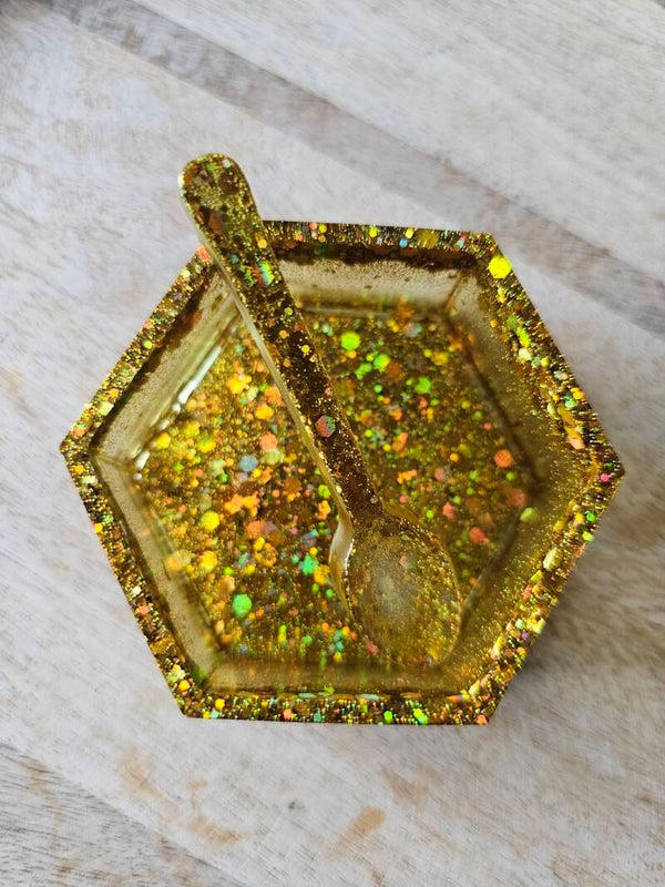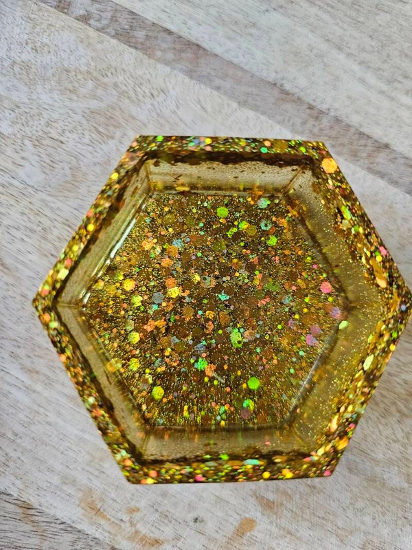 Loose parts zijn een fantastische toevoeging aan een speel/ werkplek. Dit prachtige bakje is gemaakt van epoxy. De bakjes zijn doorzichtig met super veel glitters wat bijvoorbeeld een fantastisch effect geeft op een lichttafel of in een watertafel.