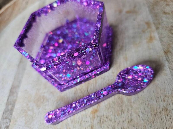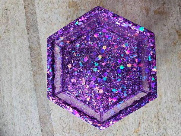 Loose parts zijn een fantastische toevoeging aan een speel/ werkplek. Dit prachtige bakje is gemaakt van epoxy. De bakjes zijn doorzichtig met super veel glitters wat bijvoorbeeld een fantastisch effect geeft op een lichttafel of in een watertafel.