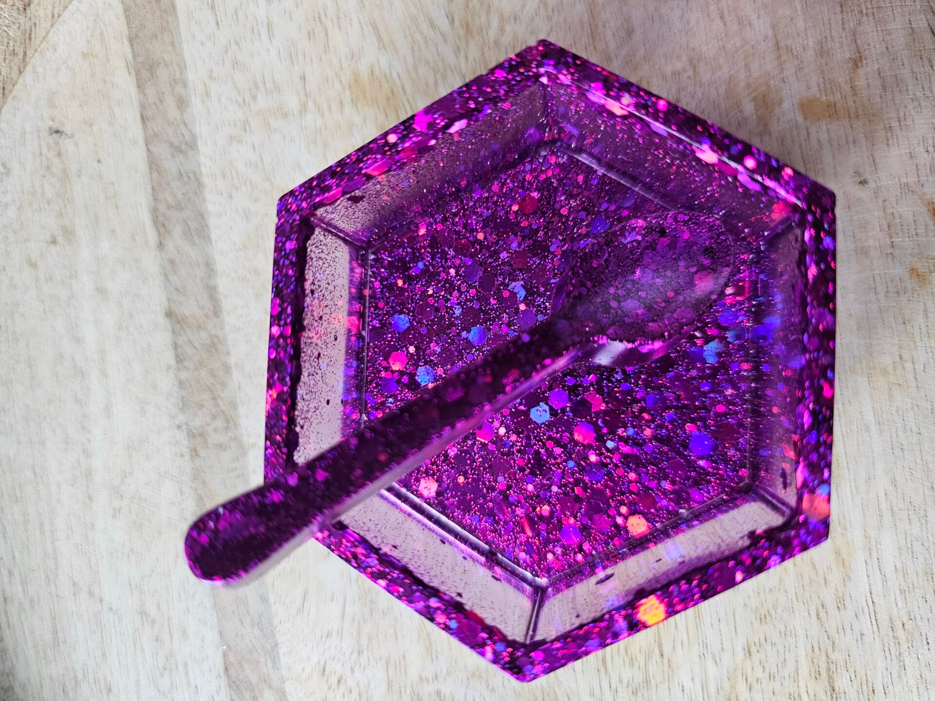 Loose parts zijn een fantastische toevoeging aan een speel/ werkplek. Dit prachtige bakje is gemaakt van epoxy. De bakjes zijn doorzichtig met super veel glitters wat bijvoorbeeld een fantastisch effect geeft op een lichttafel of in een watertafel.