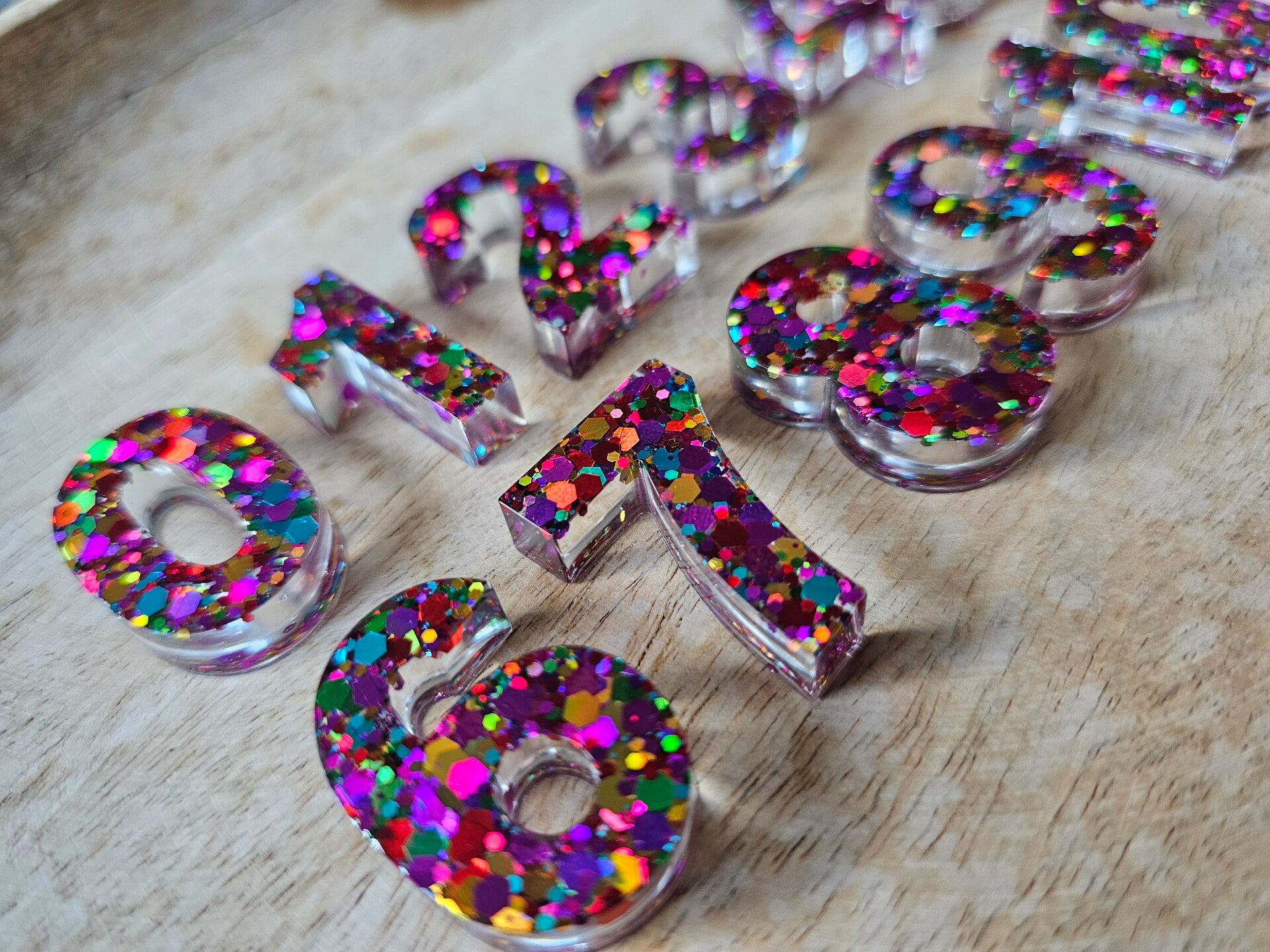 Loose parts zijn een fantastische toevoeging aan een speel/ werkplek. Deze prachtige cijfers zijn gemaakt van epoxy. De cijfers zijn doorzichtig met super veel glitters wat bijvoorbeeld een fantastisch effect geeft op een lichttafel of in een watertafel. En in een zandtafel geeft dit een super tof stempel effect.