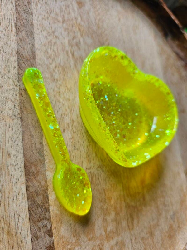 Loose parts zijn een fantastische toevoeging aan een speel/ werkplek. Dit prachtige bakje is gemaakt van epoxy. De bakjes zijn doorzichtig met super veel glitters wat bijvoorbeeld een fantastisch effect geeft op een lichttafel of in een watertafel.