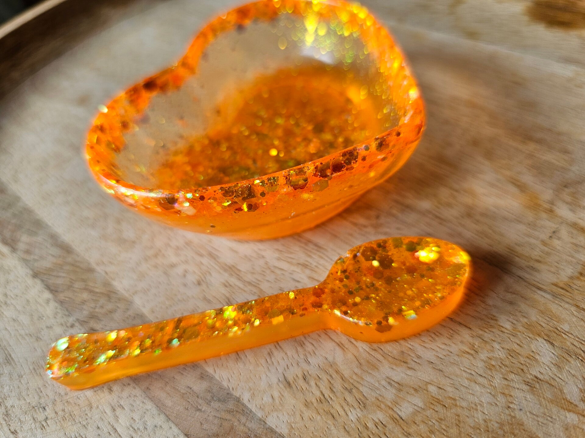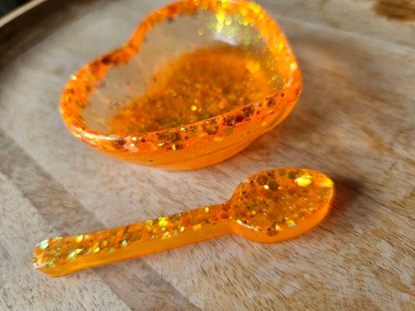 Loose parts zijn een fantastische toevoeging aan een speel/ werkplek. Dit prachtige bakje is gemaakt van epoxy. De bakjes zijn doorzichtig met super veel glitters wat bijvoorbeeld een fantastisch effect geeft op een lichttafel of in een watertafel.