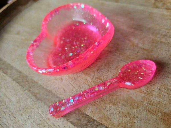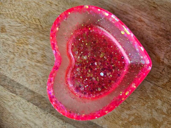 Loose parts zijn een fantastische toevoeging aan een speel/ werkplek. Dit prachtige bakje is gemaakt van epoxy. De bakjes zijn doorzichtig met super veel glitters wat bijvoorbeeld een fantastisch effect geeft op een lichttafel of in een watertafel.