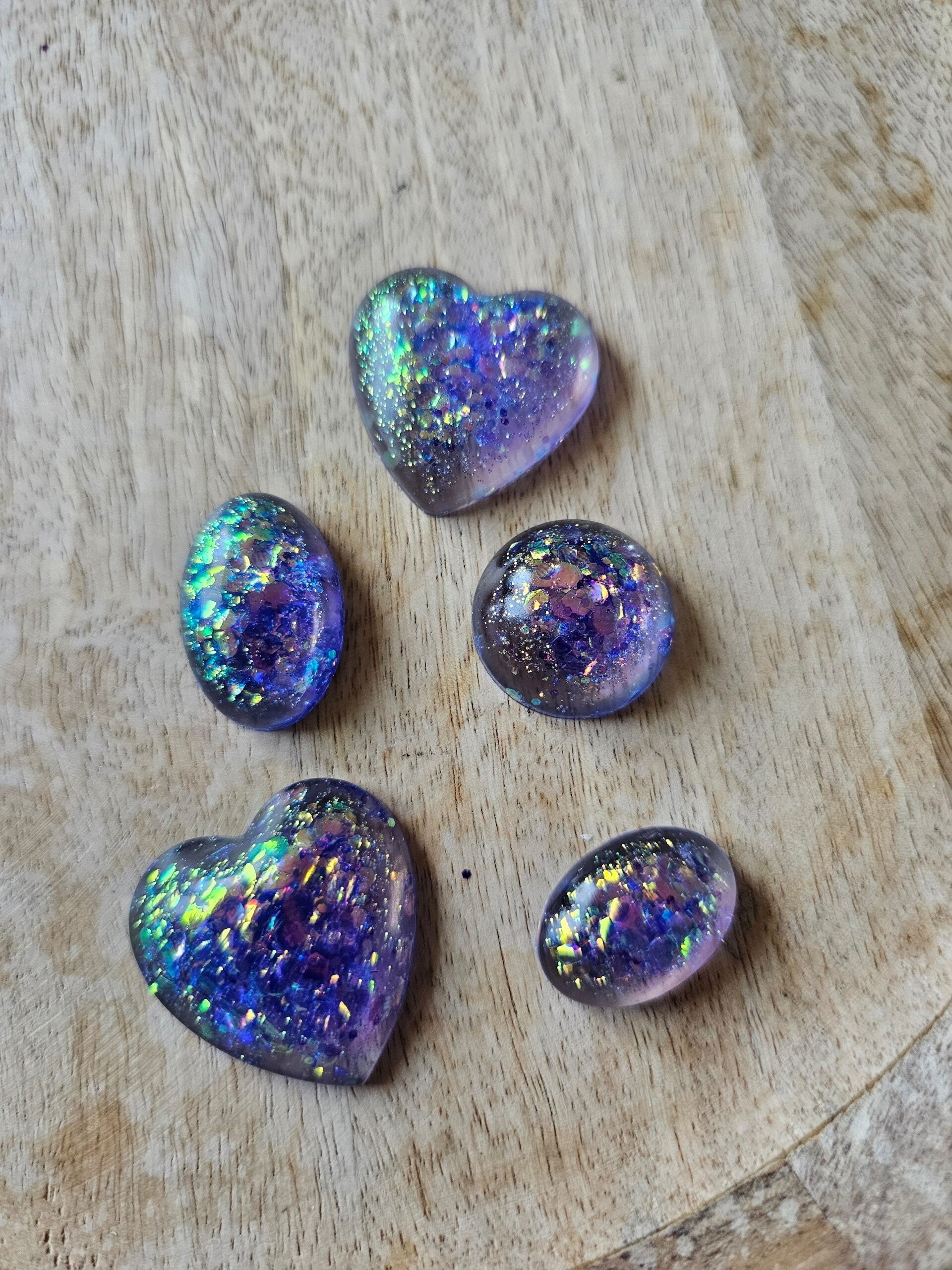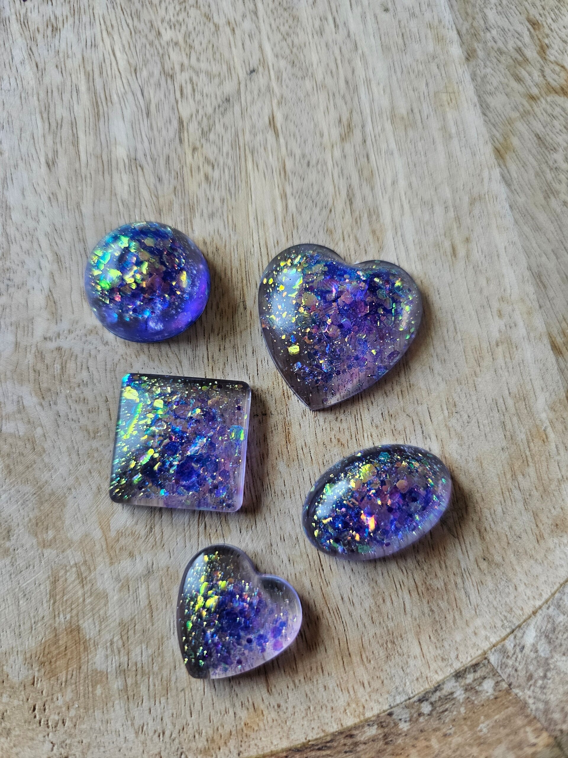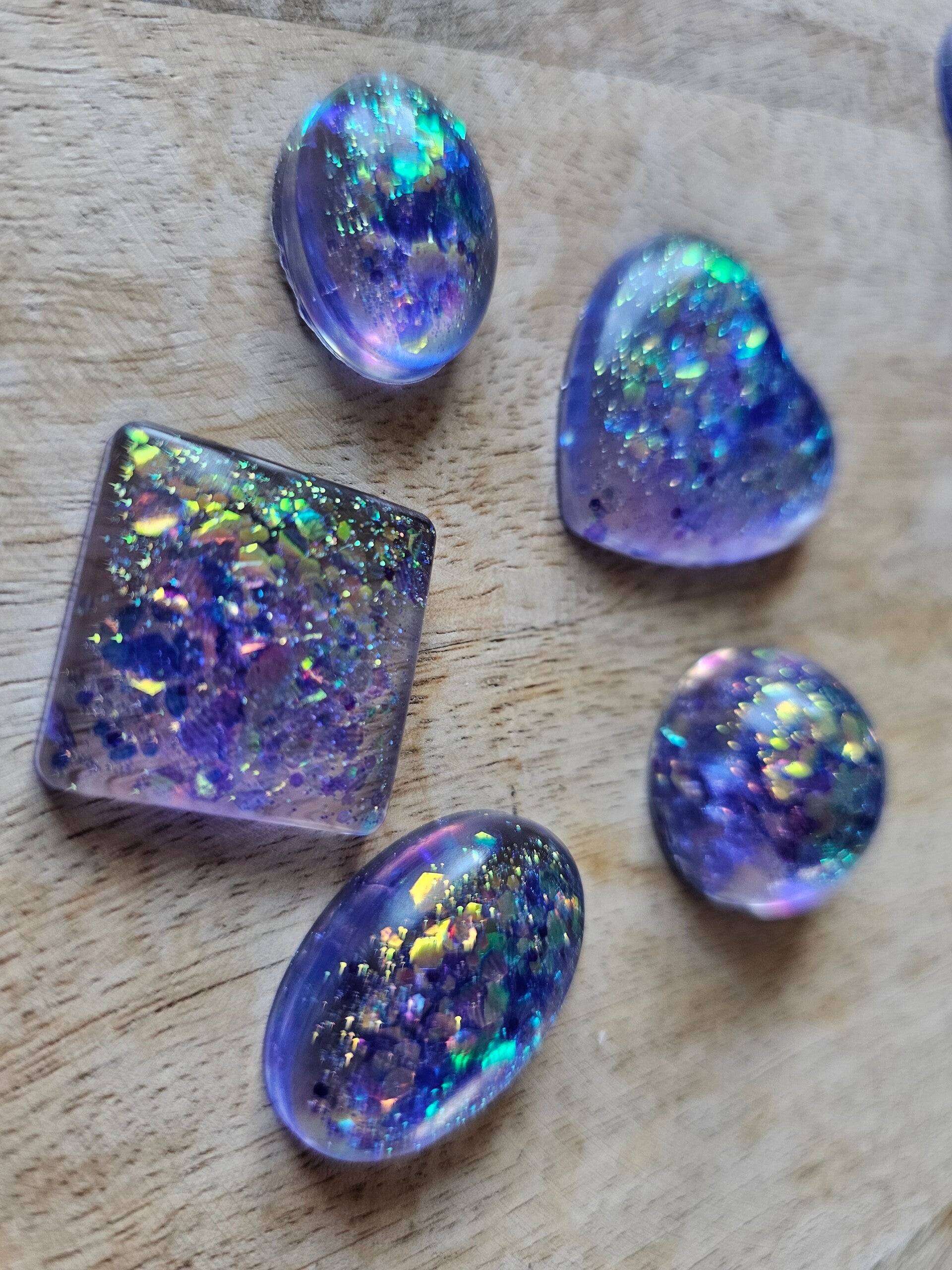 Loose parts zijn een fantastische toevoeging aan een speel/ werkplek. Deze prachtige vormen zijn gemaakt van epoxy. De vormen zijn doorzichtig met super veel parelmoer glitters wat bijvoorbeeld een fantastisch effect geeft op een lichttafel of in een watertafel. En in een zandtafel geeft dit een super tof stempel effect.