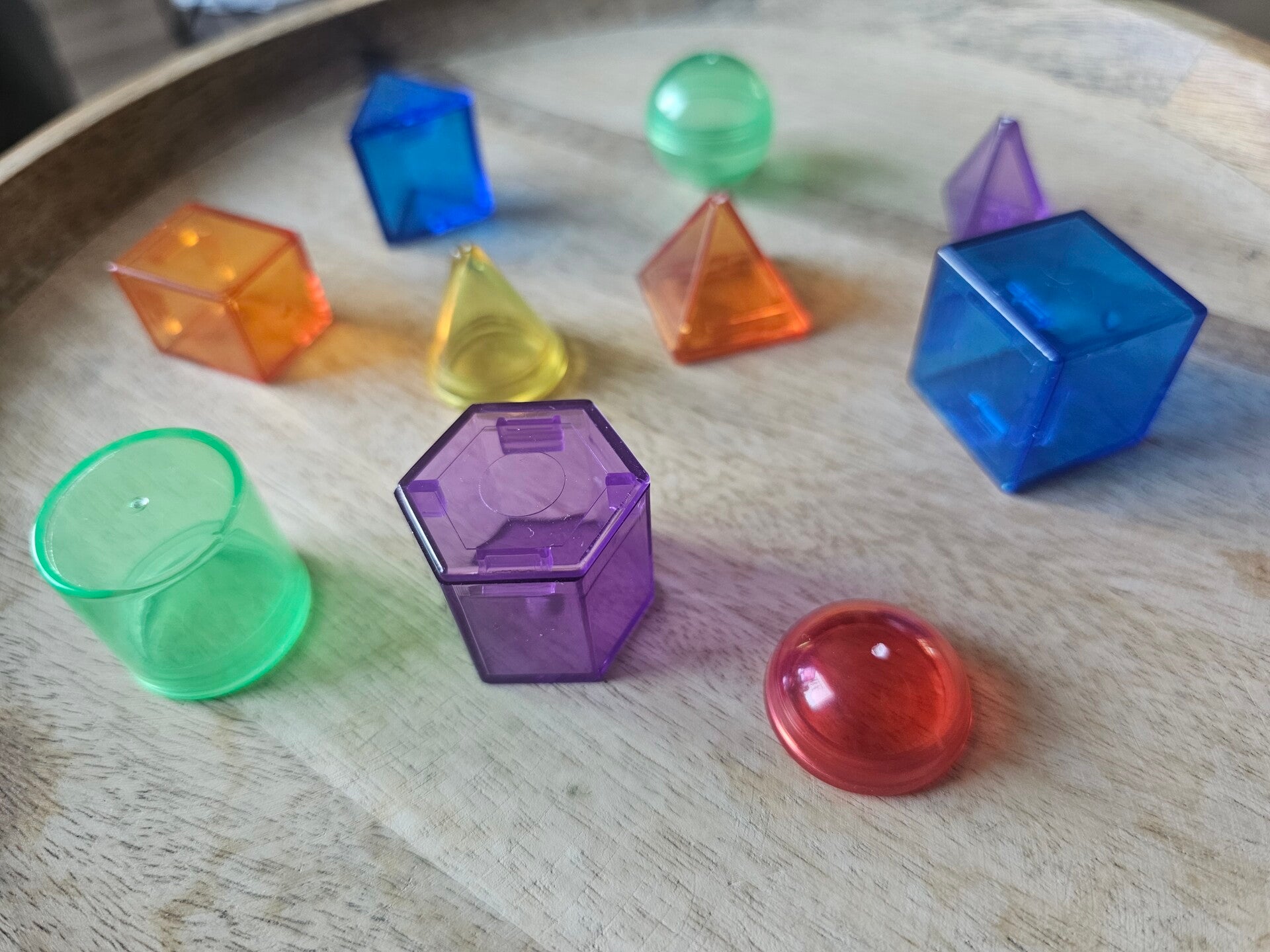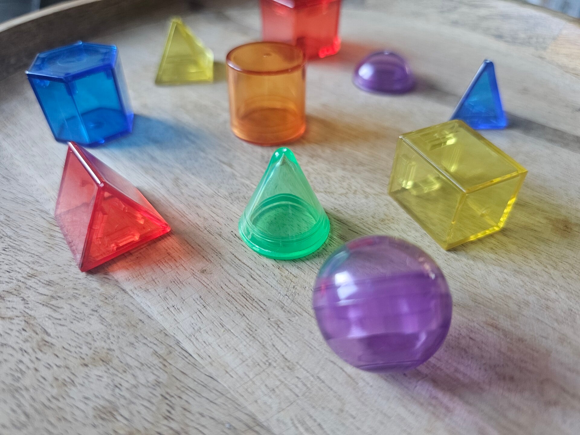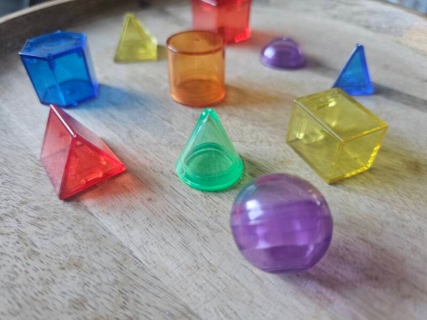 Loose parts zijn een fantastische toevoeging aan een speel/ werkplek. Deze prachtige 3d vormen zijn gemaakt van acryl. De vormen zijn doorzichtig wat bijvoorbeeld een fantastisch effect heeft op een lichttafel of in een watertafel. Deze vormen passen perfect bij de letters en cijfers van acryl.