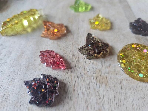 Loose parts zijn een fantastische toevoeging aan een speel- en leerplek. In deze set krijg je 8 verschillende bladeren en een cirkel. Deze blaadjes zijn gemaakt van epoxy. Je krijgt precies de set van de foto.