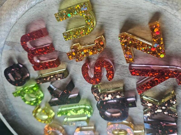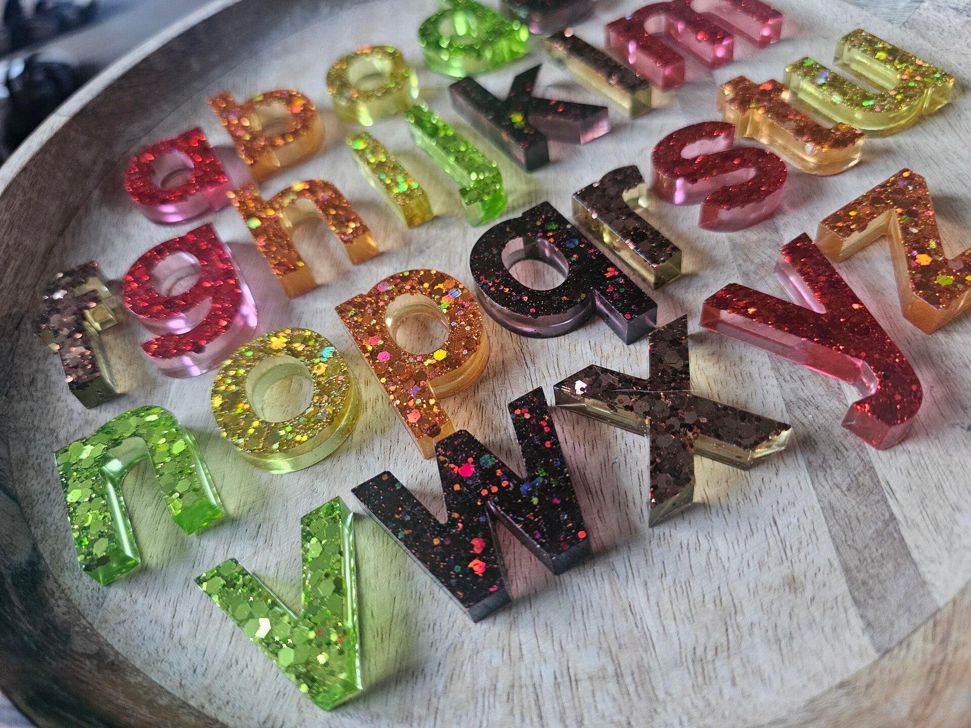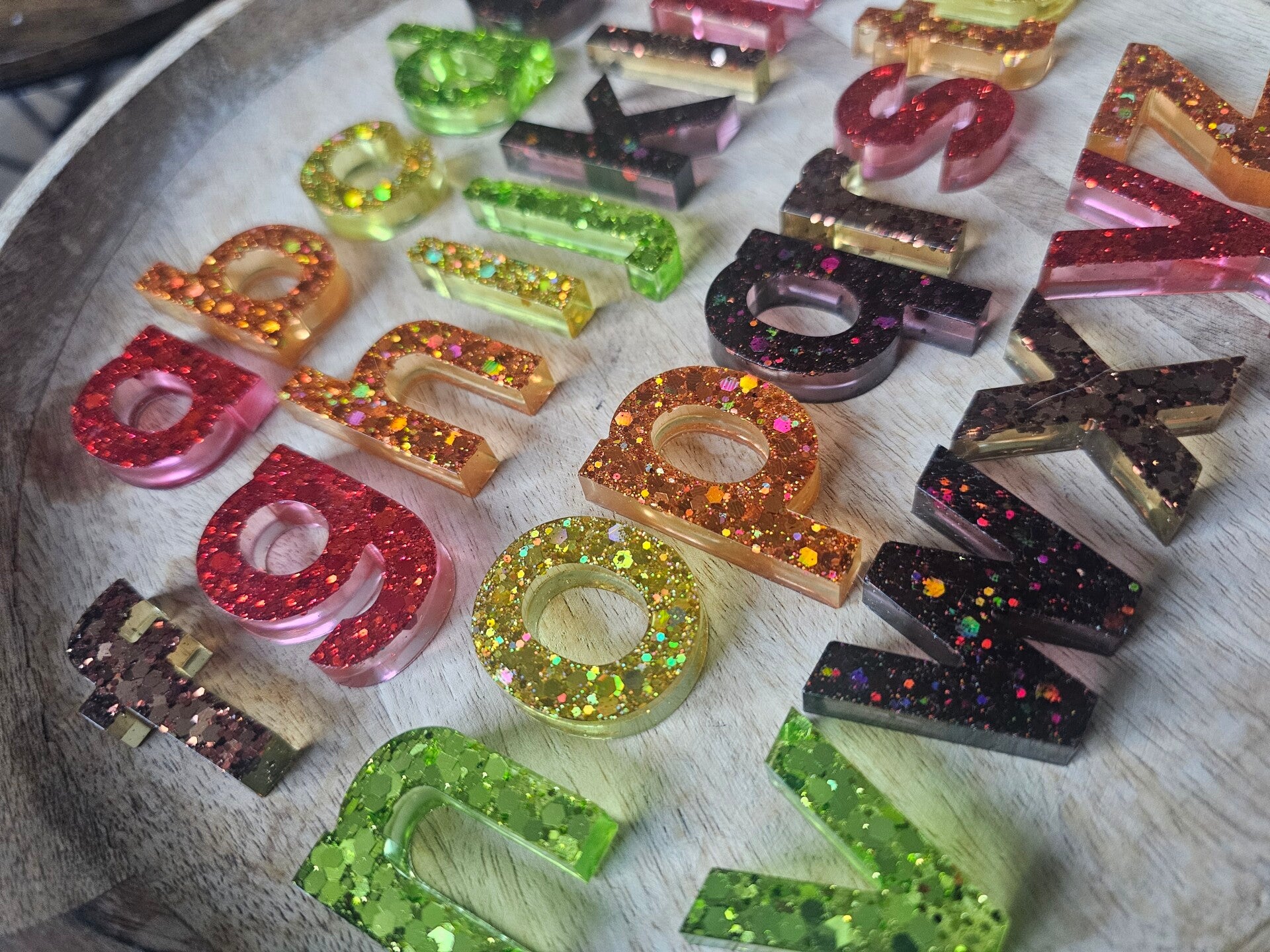 Loose parts zijn een fantastische toevoeging aan een speel/ werkplek. Deze prachtige letters zijn gemaakt van epoxy. De letters zijn doorzichtig gekleurd met super veel glitters wat bijvoorbeeld een fantastisch effect geeft op een lichttafel of in een watertafel. En in een zandtafel geeft dit een super tof stempel effect. De set heeft prachtige herfstkleuren.