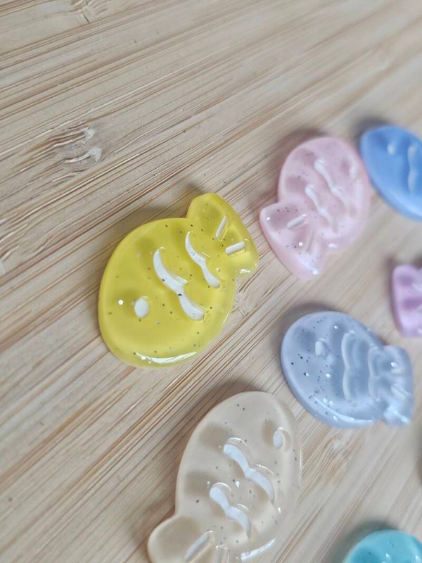 Loose parts zijn een fantastische toevoeging aan een speel/ werkplek. Deze vissen zijn gemaakt van hars en ze hebben allemaal een subtiele glitter.