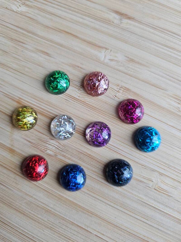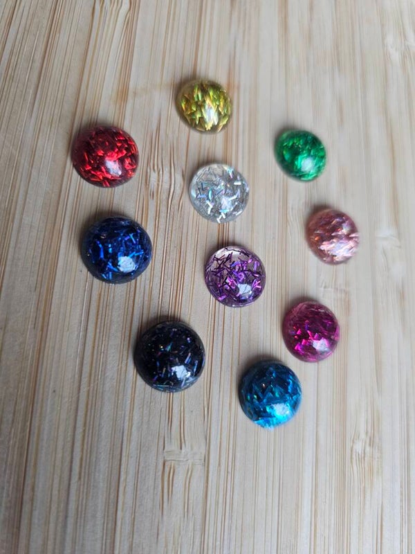 Loose parts zijn een fantastische toevoeging aan een speel/ werkplek. Deze halve cirkels zijn gemaakt van epoxy hars en hierin zijn glitters verwerkt.