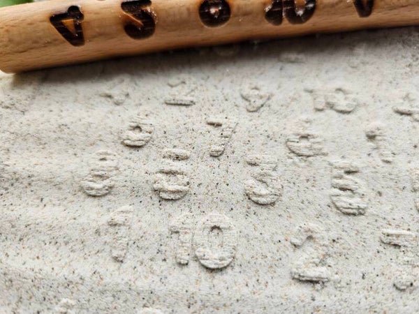 Deze roller laat een afdruk met cijfers achter.