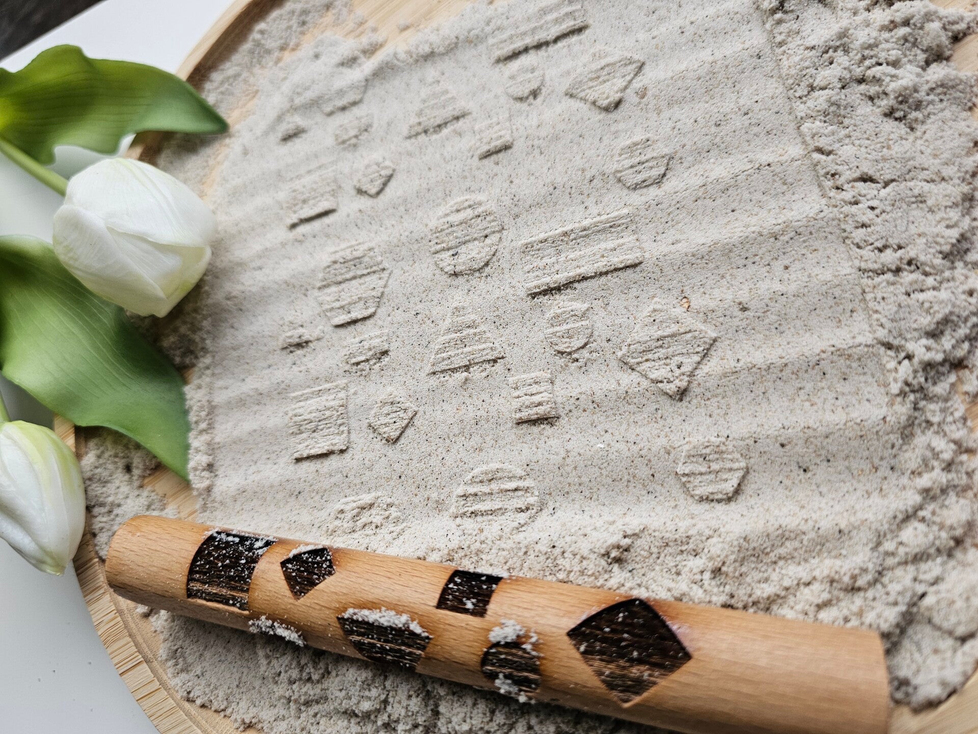 De rollers zijn geschikt voor kinetisch zand, klei en speeldeeg om in te rollen.