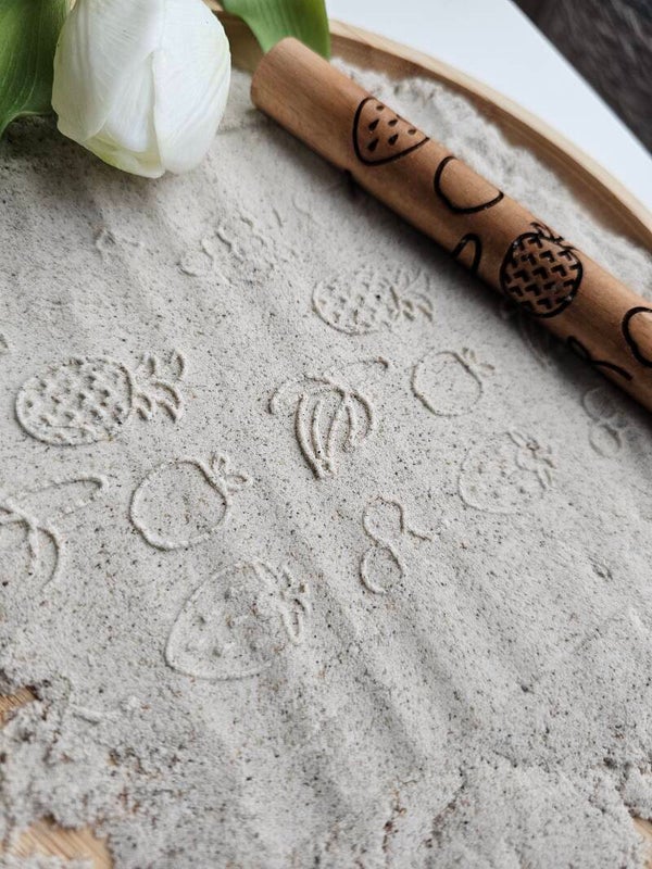 Deze roller laat een afdruk met fruitsoorten.