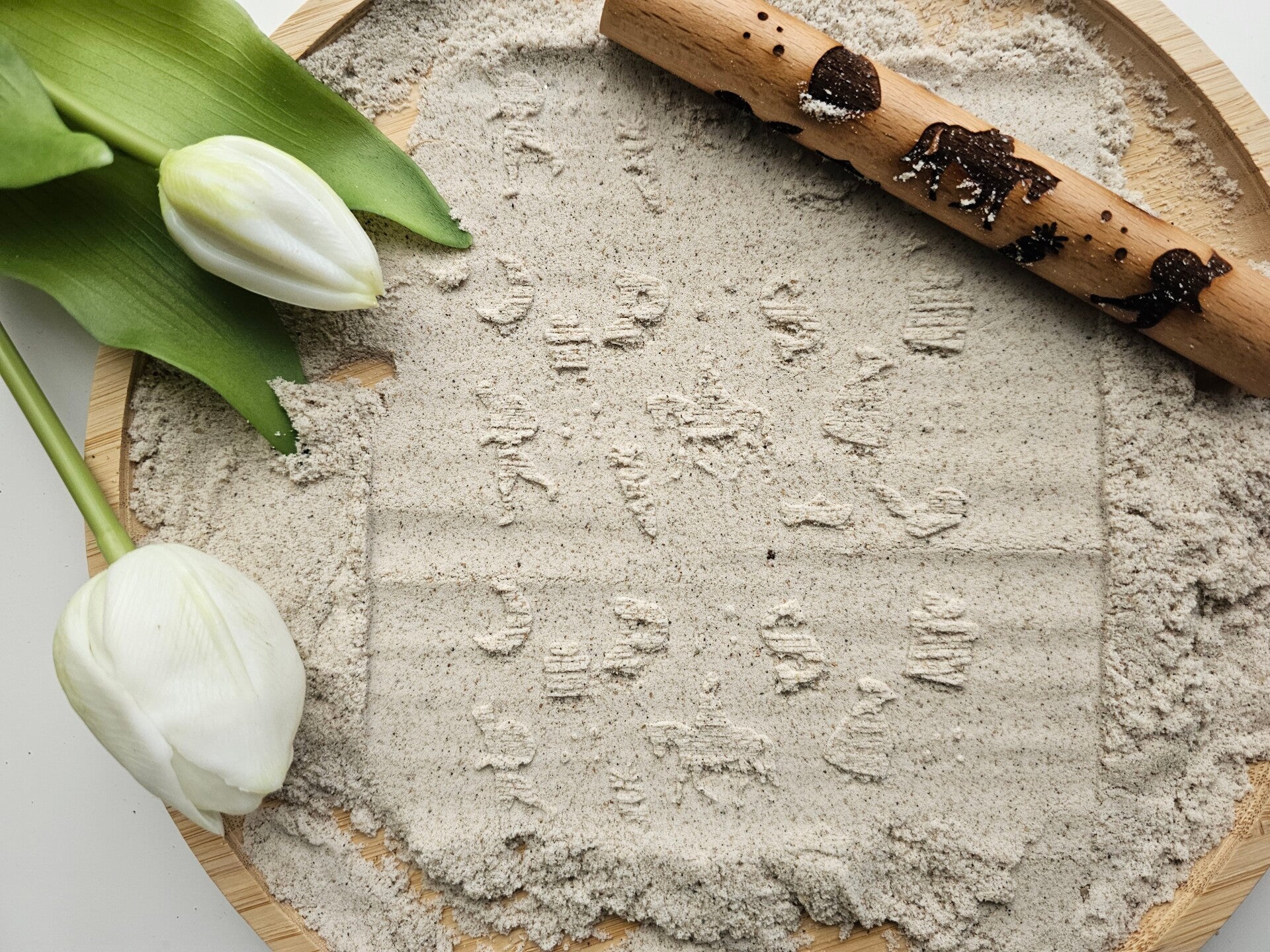 De rollers zijn geschikt voor kinetisch zand, klei en speeldeeg om in te rollen.