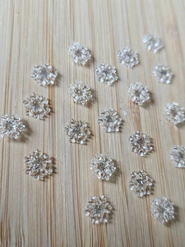 Loose parts zijn een fantastische toevoeging aan een speel/ werkplek. Deze prachtige, kleine sneeuwvlokken hebben kleine zilveren glitters en ze zijn gemaakt van epoxy hars.