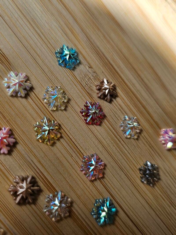 Loose parts zijn een fantastische toevoeging aan een speel/ werkplek. Deze prachtige, kleine sneeuwvlokken hebben kleine zilveren glitters en ze zijn gemaakt van epoxy hars.