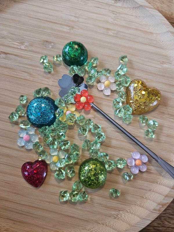 Hij is 17,5cm lang en de bloem is 2,8cm breed.