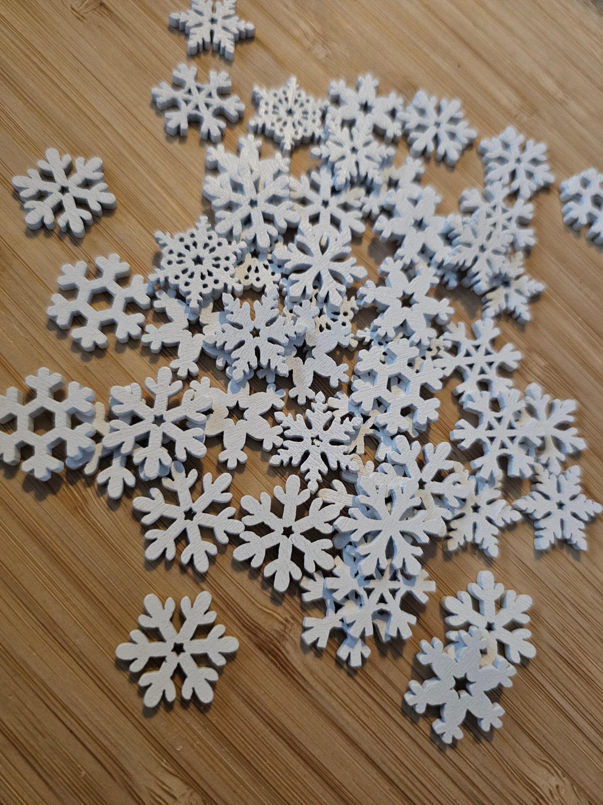 Loose parts zijn een fantastische toevoeging aan een speel/ werkplek. Deze sneeuwvlokken zijn gemaakt van hout.