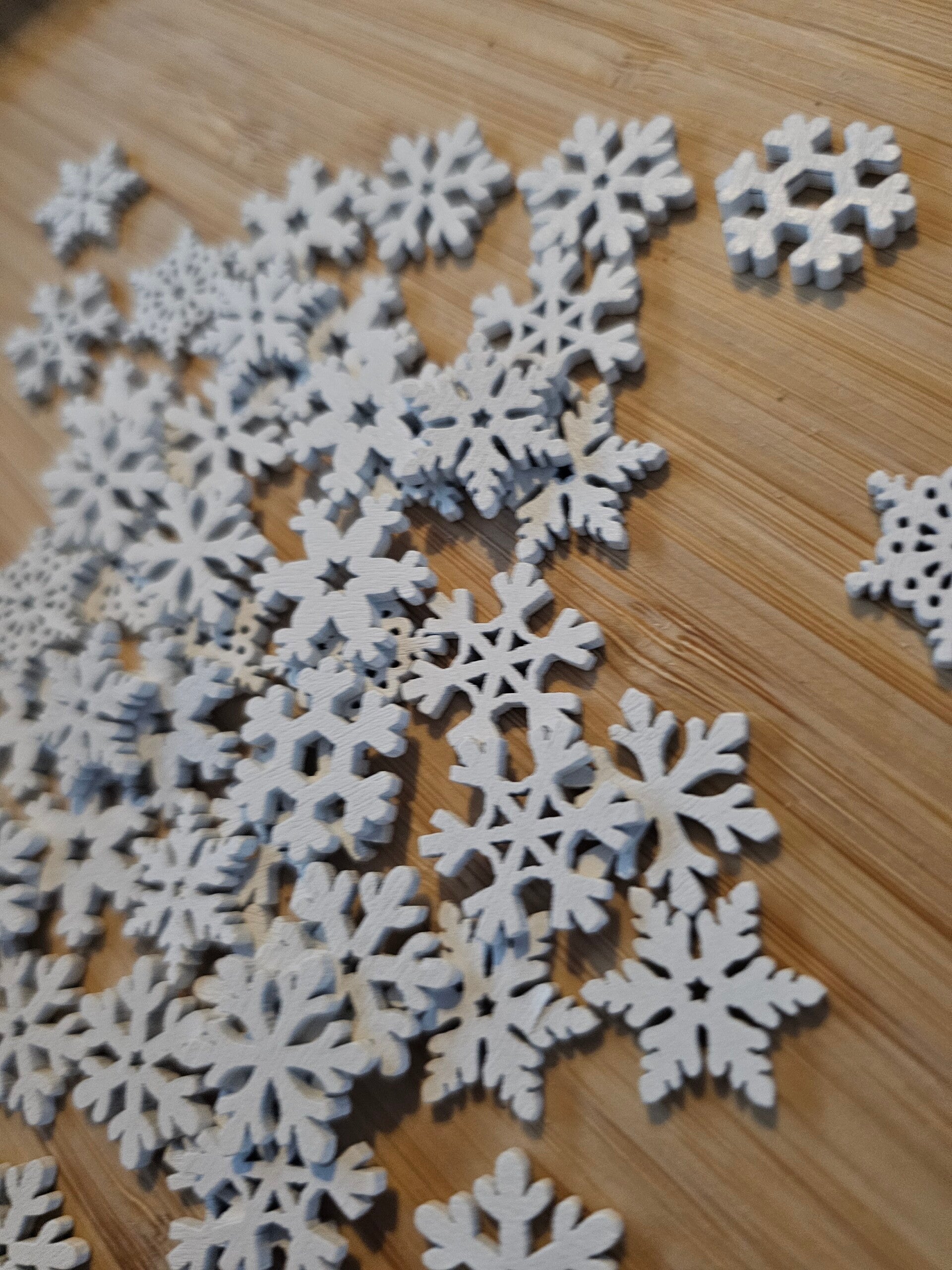 De sneeuwvlokken zijn 2,2cm bij 1,8cm