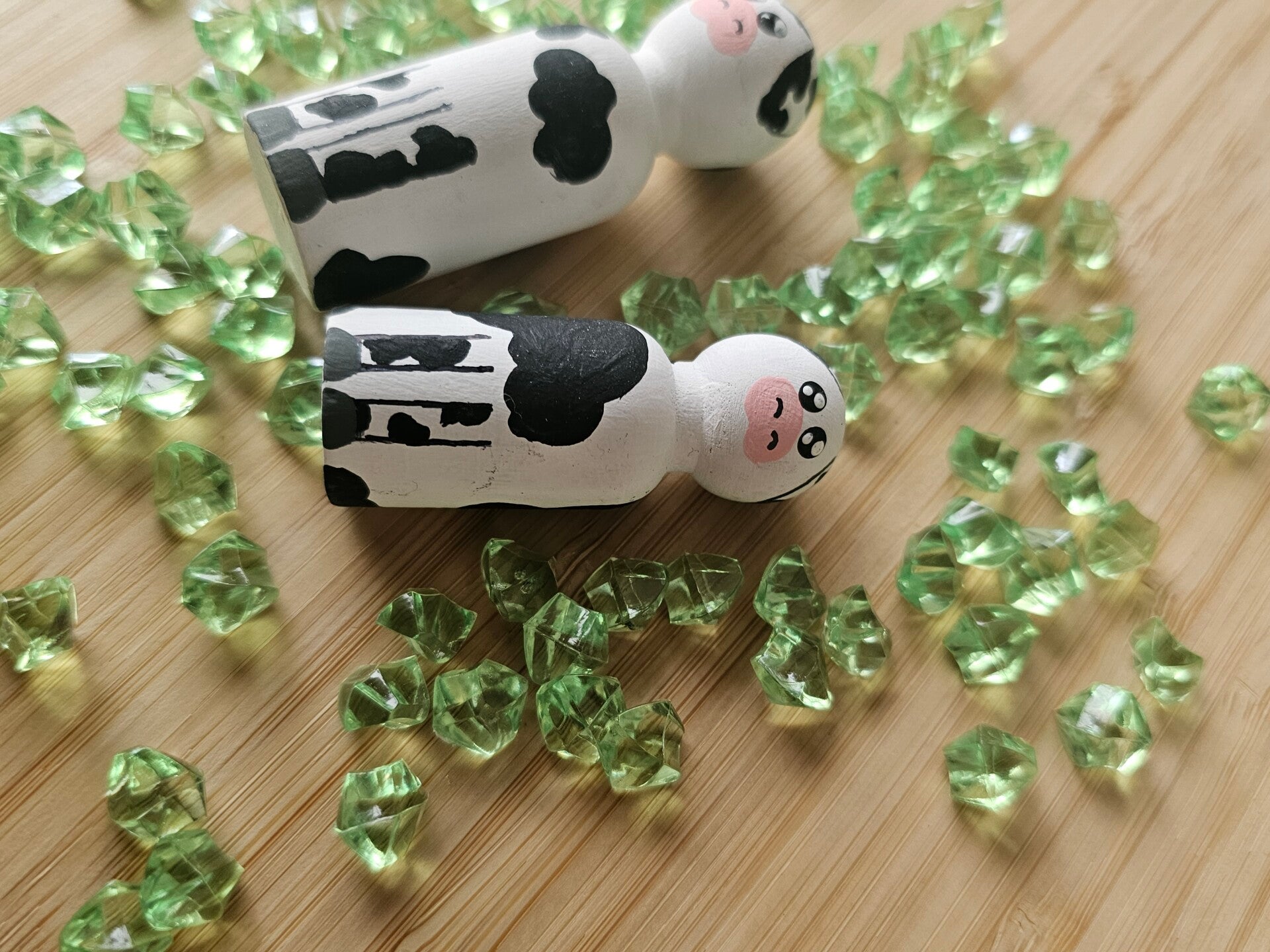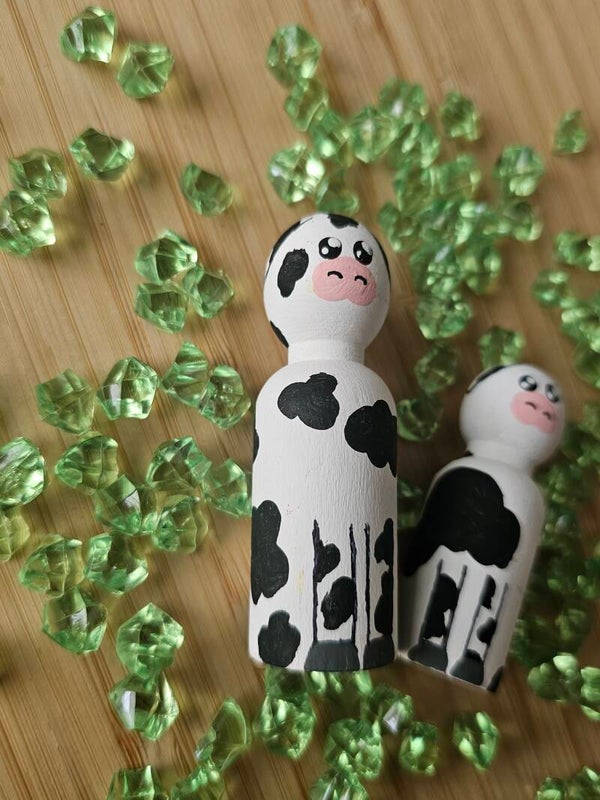Deze koeien pegdoll maakt het spelen met loose parts, de boerderijhoek, in de bouwhoek nog leuker. Kinderen kunnen er helemaal op los gaan met hun fantasie.
