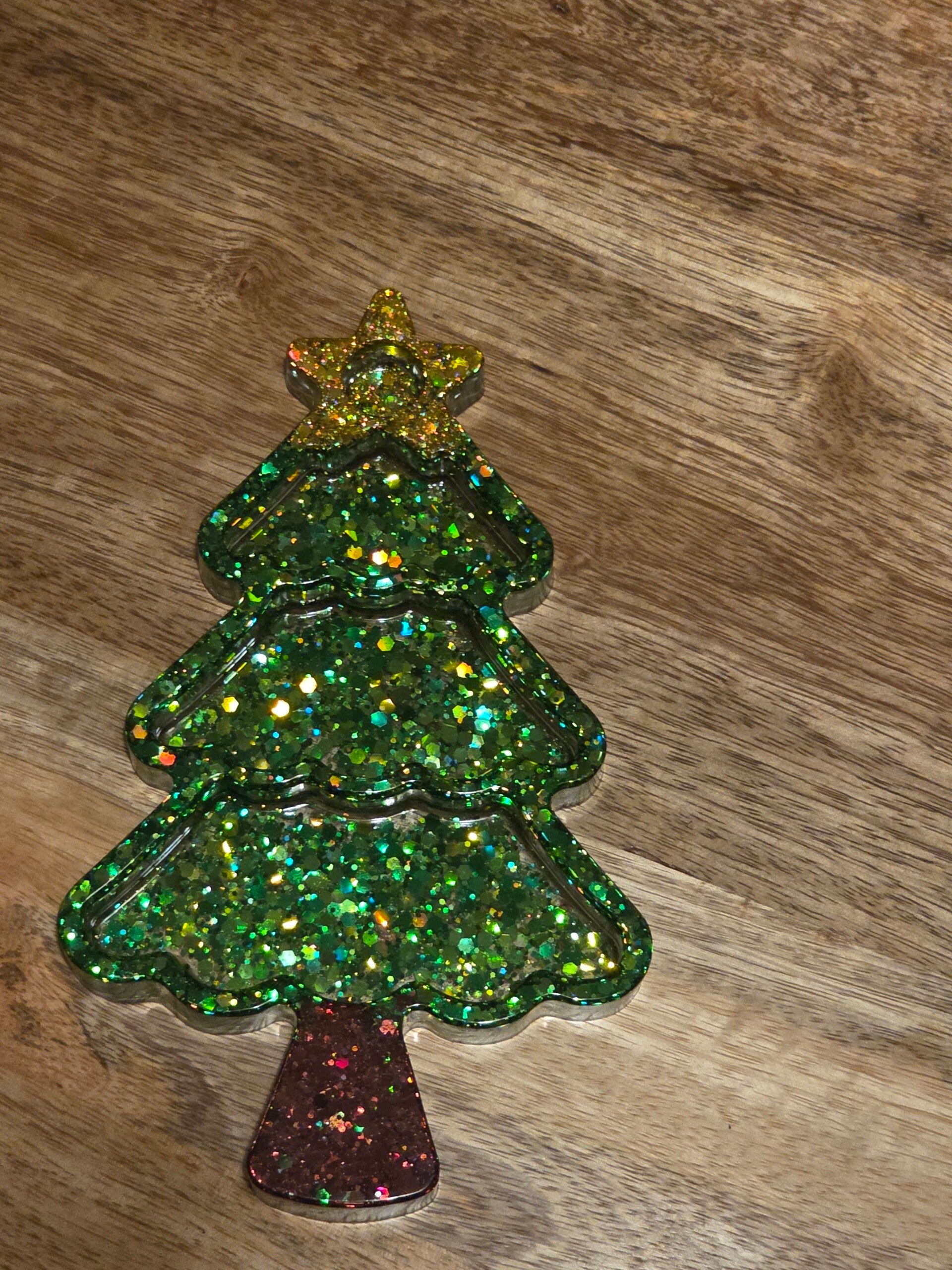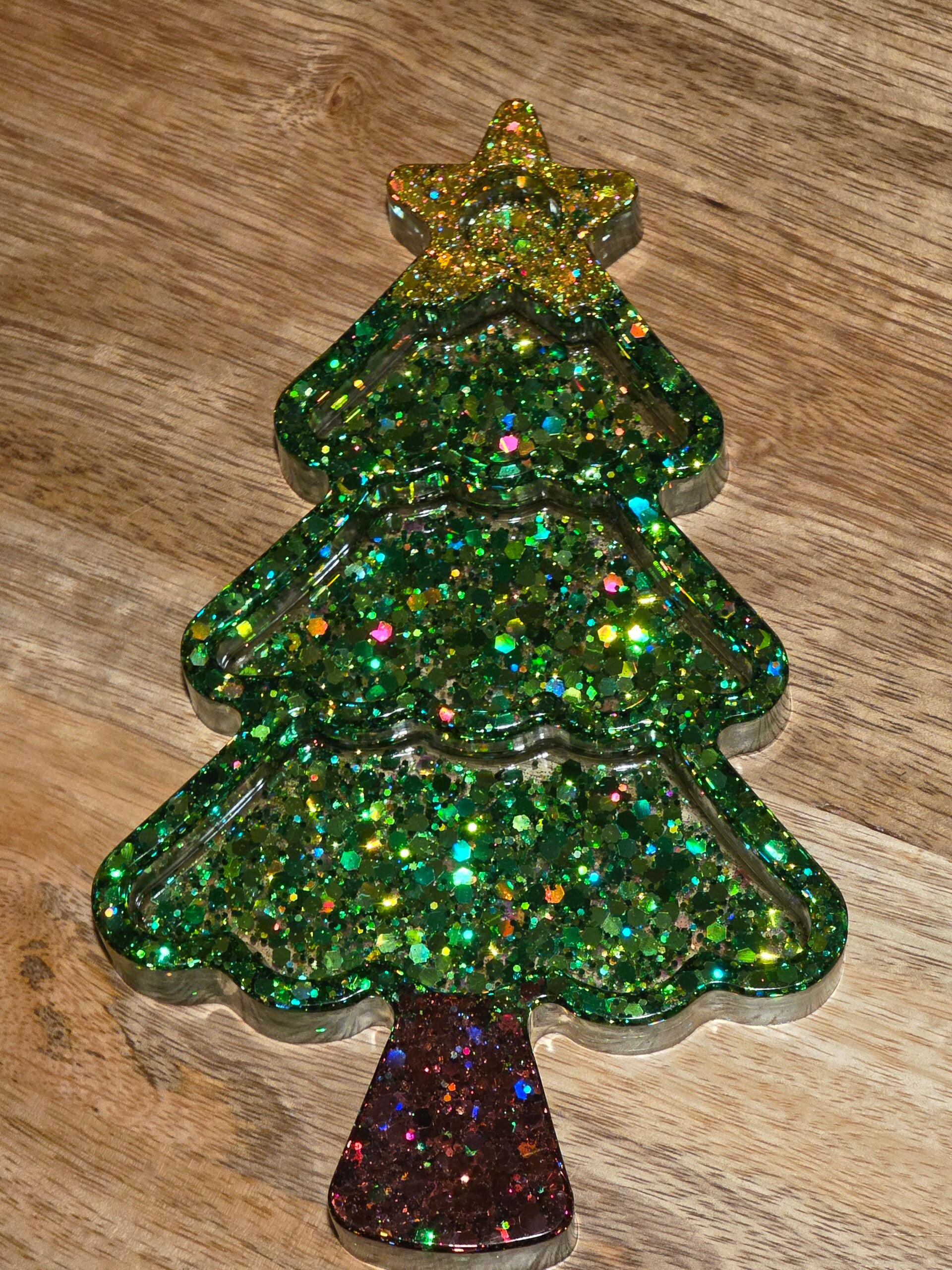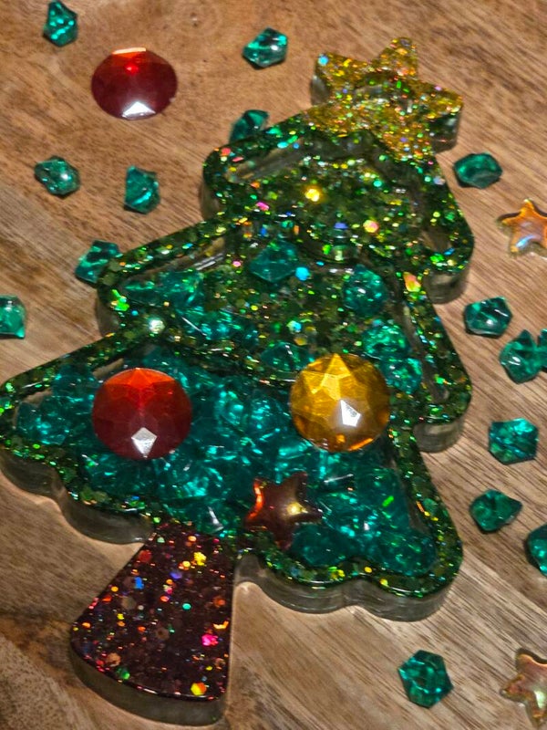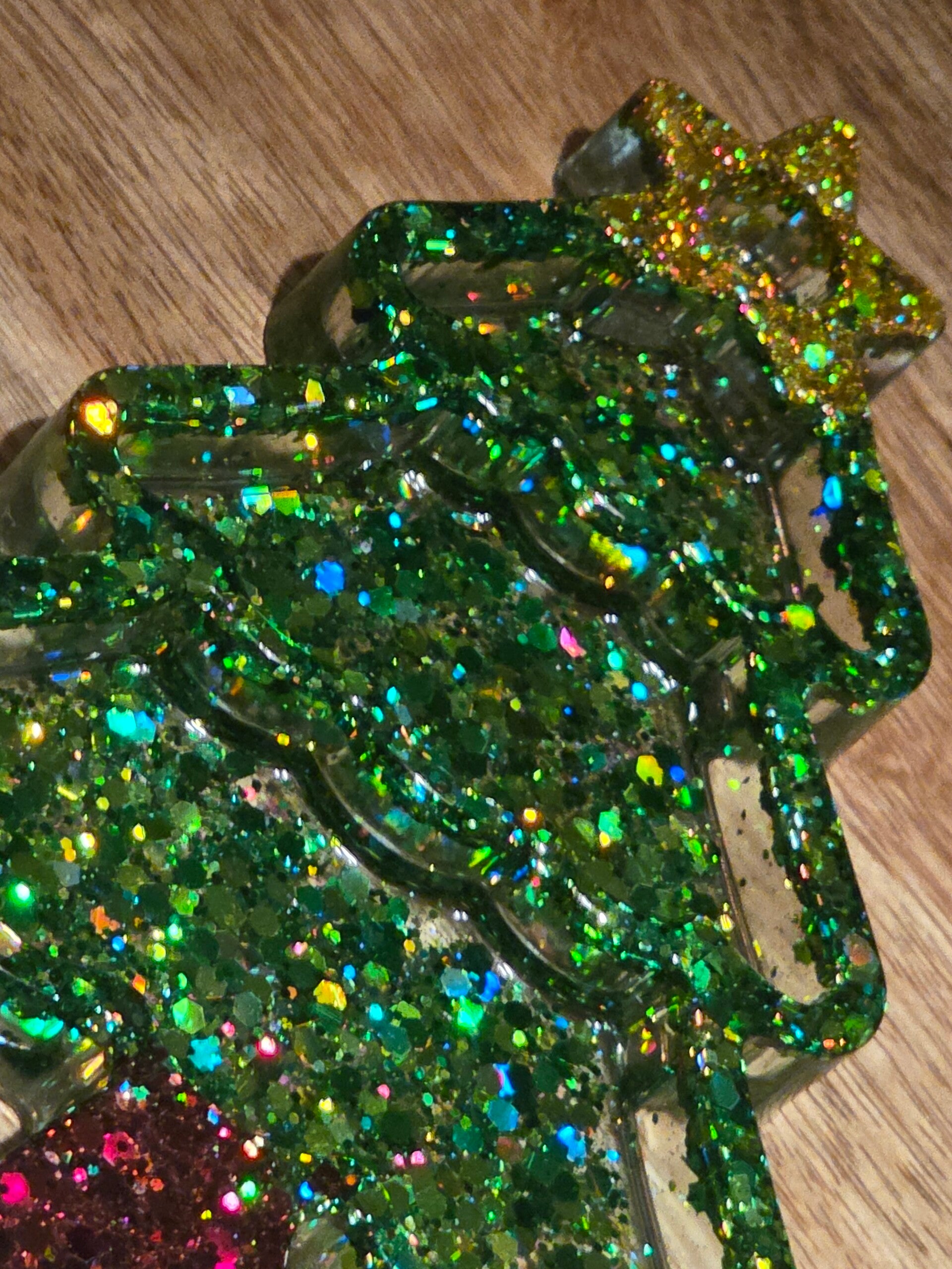 Deze kerstboom is een fantastische toevoeging aan een speel/ werkplek. Deze kerstboom is gemaakt van epoxy. De bakjes zijn doorzichtig met super veel kleuren en glitters wat bijvoorbeeld een fantastisch effect geeft op een lichttafel of in een watertafel.
