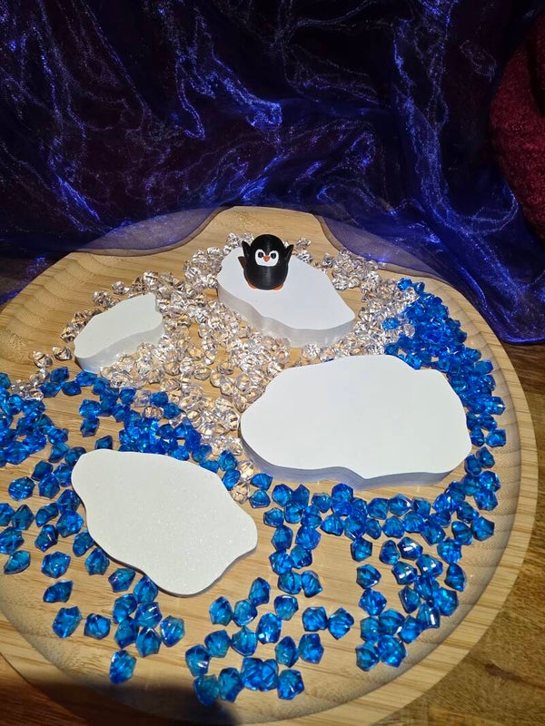 De ijsschotsen zijn gemaakt van PLA. PLA is een biologisch afbreekbaar materiaal, geproduceerd uit plantaardige grondstoffen zoals maiszetmeel of suikerriet. Een duurzaam alternatief voor tradioneel plastic.