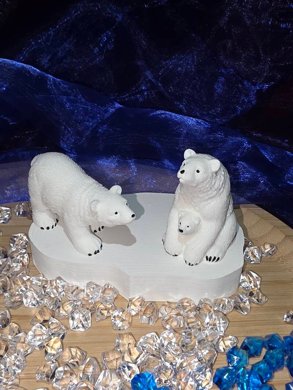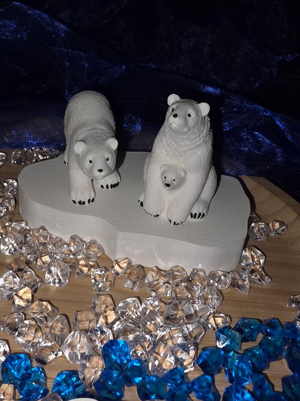 Deze ijsberen zijn te koop in een set van 2. Je krijgt 2 grote ijsberen. 1 staande ijsbeer en 1 zittende ijsbeer met een baby. Deze set is gemaakt van acryl.