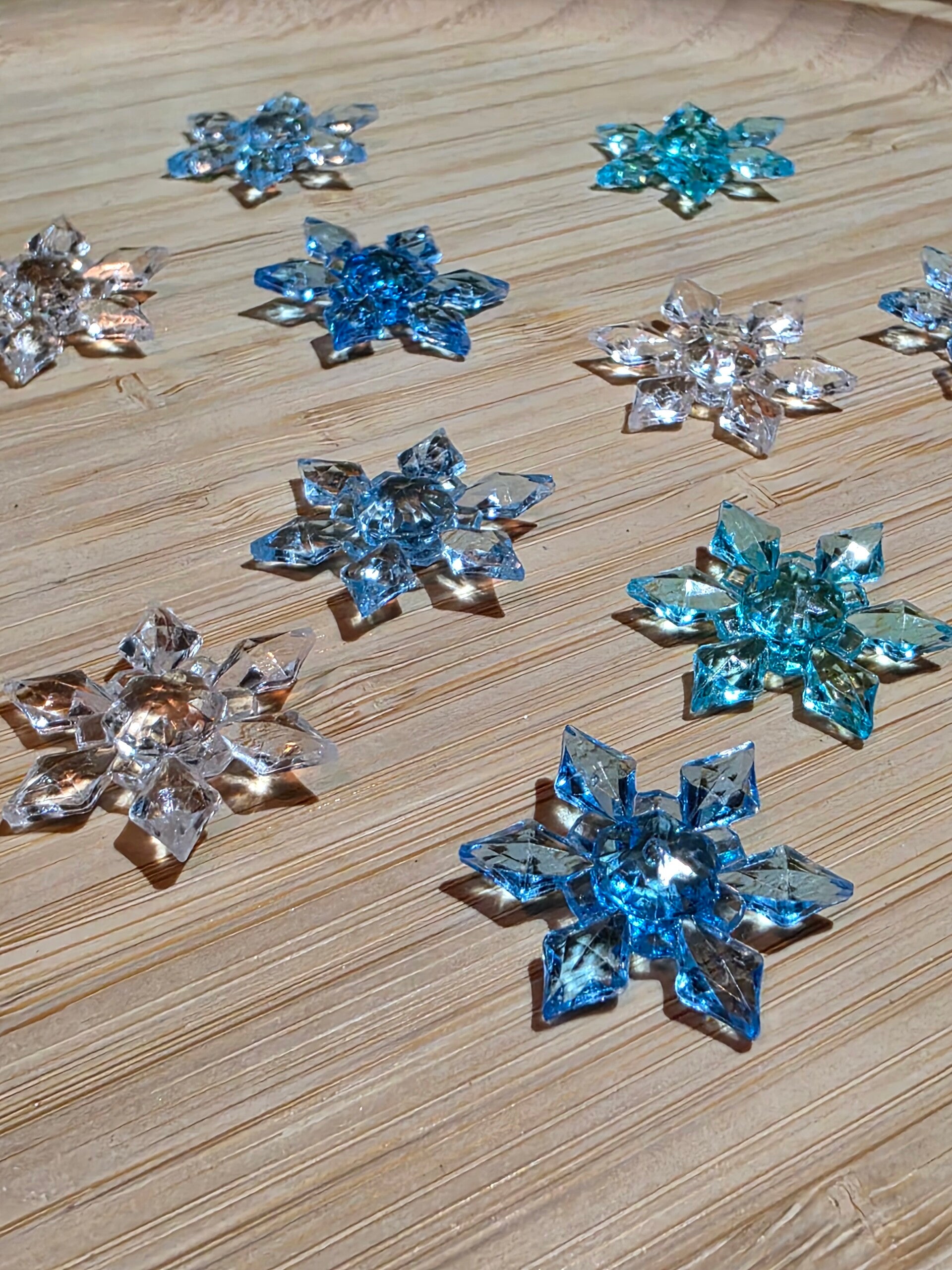Loose parts zijn een fantastische toevoeging aan een speel/ werkplek. Deze prachtige sneeuwvlokken zijn doorzichtig en glanzen mooi. Ze zijn gemaakt van acryl.