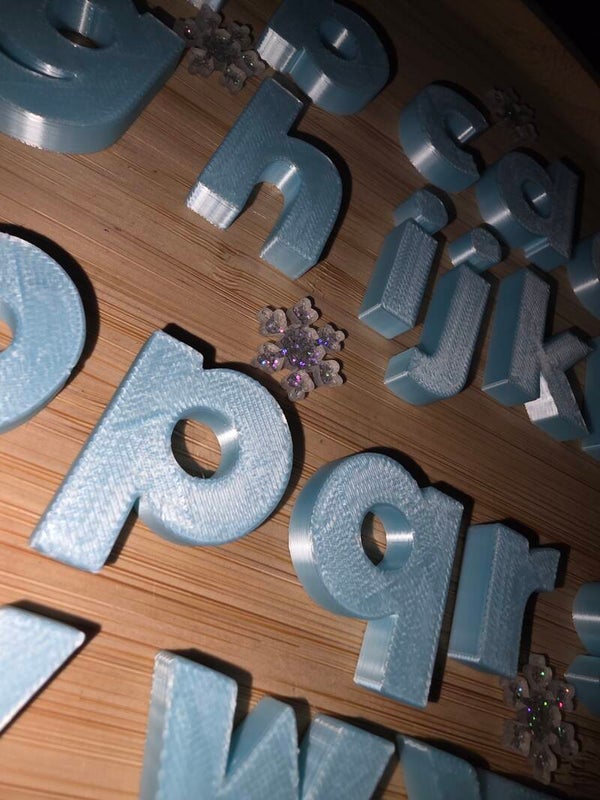 Afmetingen: de letters zijn tussen de 2cm en 3cm. Alleen de puntjes van de i en de j zijn kleiner.