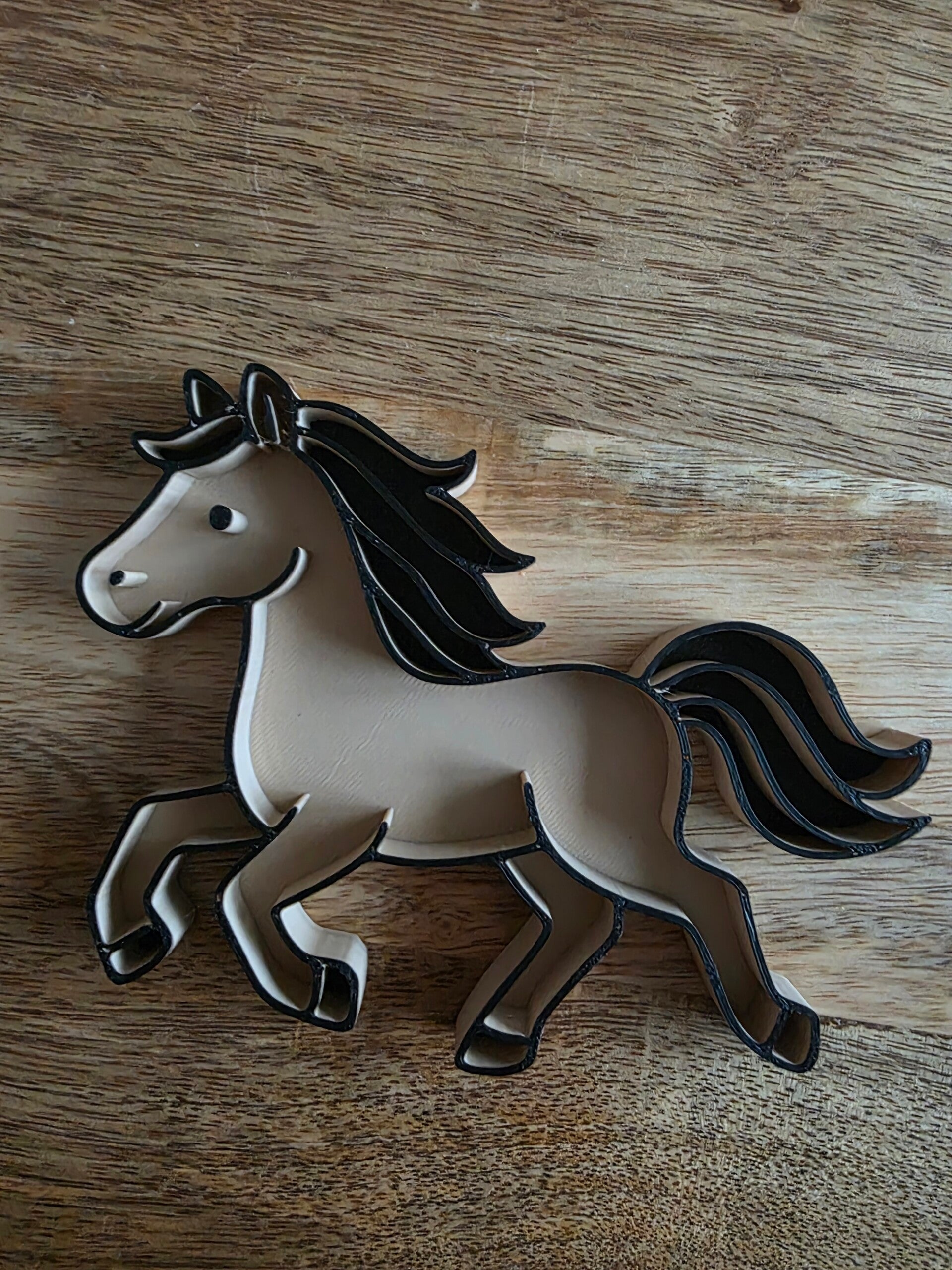 Afmetingen: het paard is 14cm en is 10cm en 1cm hoog.